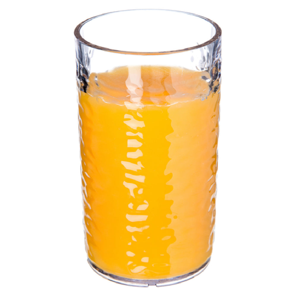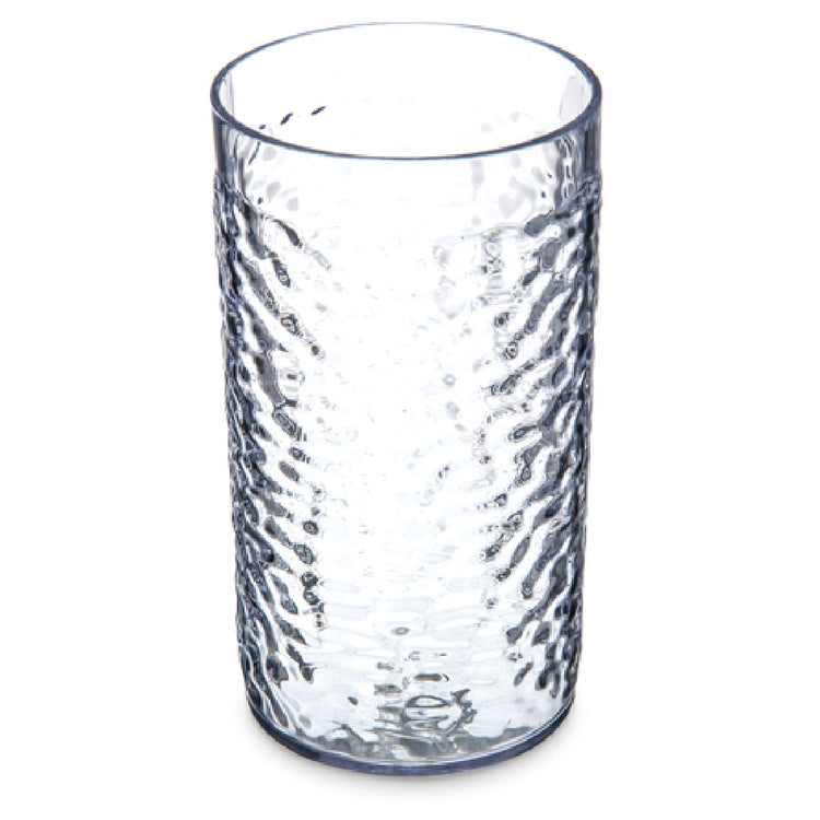 The Carlisle 551707 Carlisle Pebble Optic™ Tumbler 16 Oz. (16.70 Oz. Flush Fill) is a versatile drinkware solution designed for various hospitality and food service settings. With a capacity of 16.70 oz. when filled to the brim, this tumbler is crafted from clear SAN (styrene acrylonitrile) plastic, ensuring it remains BPA-free. Its unique pebbled exterior not only adds an aesthetic appeal but also provides a non-slip grip, making it an excellent choice for both casual and upscale dining environments. The tumbler's durability is highlighted by its resistance to stains, breaks, and chips, ensuring a long-lasting performance even under frequent use. It is dishwasher safe, promoting ease of maintenance, and can withstand a usable temperature range from 0°F to 140°F, making it suitable for a broad range of beverages. Furthermore, the tumbler is recyclable, supporting sustainable practices within the industry. Designed for practicality and style, the Carlisle Pebble Optic™ Tumbler meets the diverse needs of restaurants, cafeterias, and catering services, providing a reliable and attractive beverage solution.