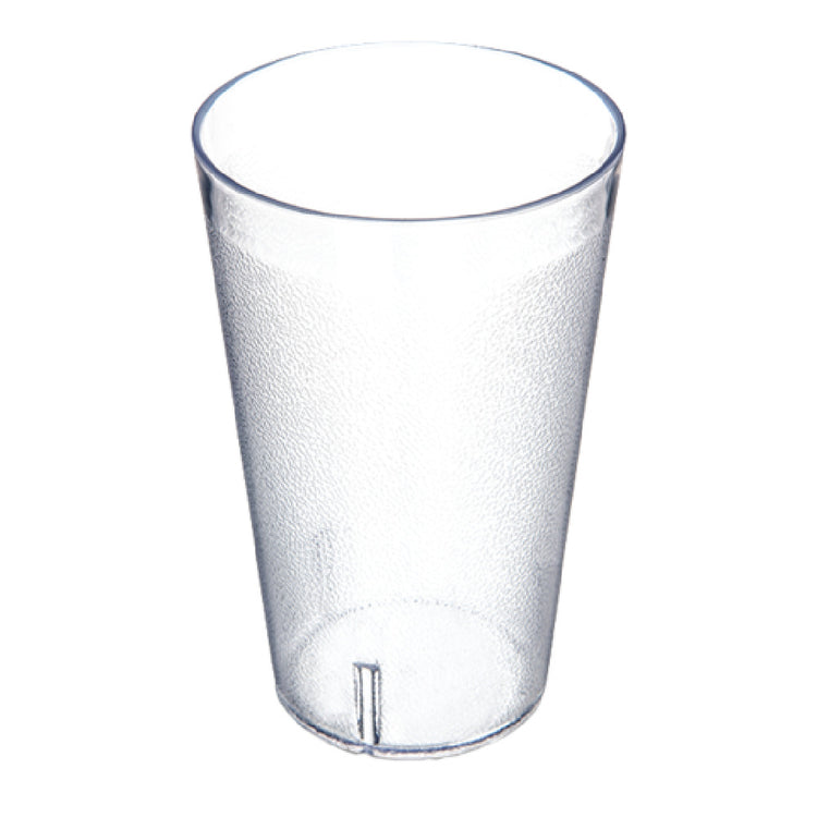 The Carlisle 553207 Carlisle Stackable™ Tumbler 32 Oz. (36.80 Oz. Flush Fill) stands out as a versatile and practical choice for both commercial and residential use. This tumbler features a tapered design and a textured exterior, offering a comfortable grip and enhancing durability. With a substantial capacity of 32 oz., expandable to 36.80 oz. when flush filled, it is perfect for serving generous portions of beverages. The tumbler is crafted from SAN (styrene acrylonitrile resin), making it stain, break, and chip resistant – a critical quality for the demanding environments of restaurants, cafeterias, and catering services. Additionally, this tumbler is dishwasher safe, simplifying the cleaning process, and is designed to be stackable, optimizing storage space efficiently. Made in the USA, the tumbler is also recyclable and BPA-free, aligning with environmentally conscious practices. Its NSF certification assures compliance with public health and safety standards. Clear in color, it complements any table setting while maintaining a professional appearance. The Carlisle Stackable™ Tumbler is a reliable choice for enhancing beverage service efficiency in any setting, from bustling food service operations to home gatherings, providing a blend of durability, convenience, and safety.