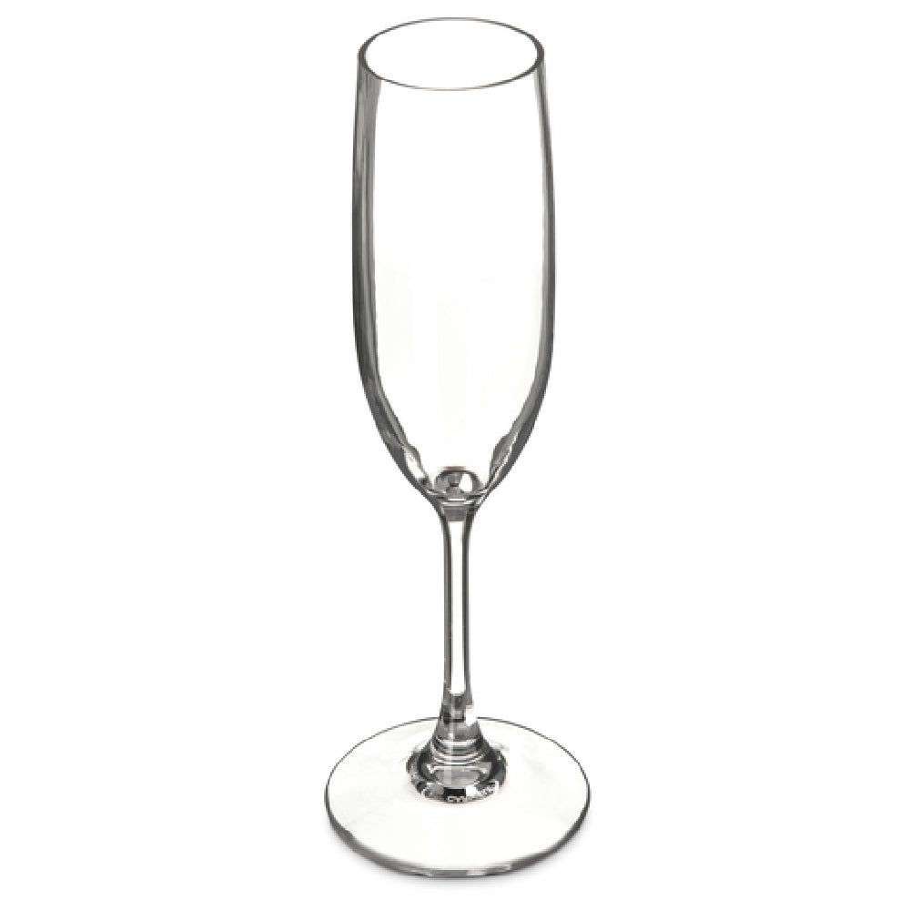 The Carlisle 564407 Carlisle Alibi™ Champagne Flute - 6 Oz. is a meticulously designed drinkware piece that combines elegance with practicality, making it a versatile choice for various market segments within the hospitality and events industry. This champagne flute, crafted from clear, shatterproof polycarbonate, offers the exquisite clarity of glass while ensuring durability and safety, particularly in high-traffic environments such as restaurants, bars, and catering events. With a capacity of 6 oz., it is perfectly suited for serving champagne and sparkling wines, enhancing the drinking experience with its sleek design. The flute’s dishwasher-safe feature significantly reduces cleaning time and effort, making it a convenient option for establishments focusing on efficiency and sustainability. Furthermore, its recyclable nature aligns with eco-conscious practices, appealing to environmentally aware businesses and consumers. The Carlisle Alibi™ Champagne Flute stands out for its combination of style, functionality, and sustainability, providing a reliable and sophisticated solution for serving beverages in a variety of settings.