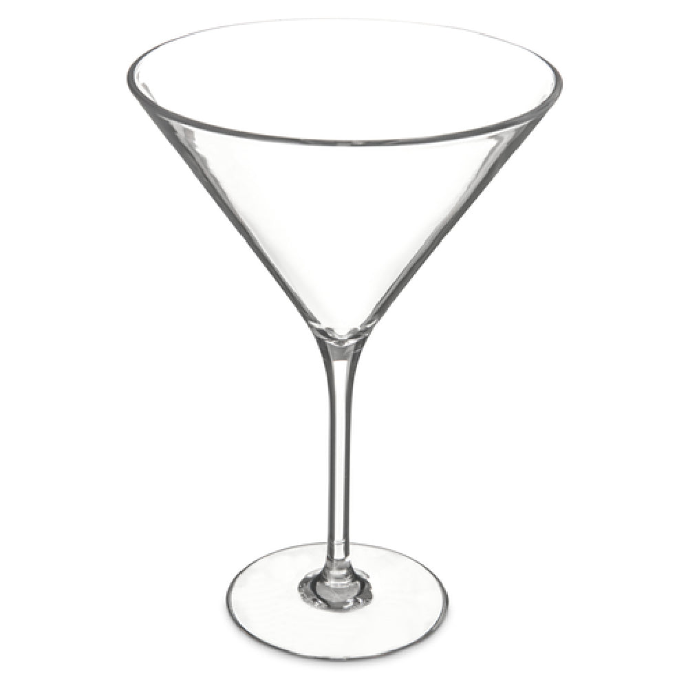 The Carlisle 564607 Carlisle Alibi™ Martini Glass is a versatile 9 oz. glass that combines durability with elegance, making it an excellent choice for various settings in the hospitality industry. Constructed from shatterproof polycarbonate, this martini glass ensures resilience and longevity, even in high-traffic environments. Its clear design mimics the appearance of traditional glass while offering the added benefit of being dishwasher safe, simplifying cleaning and maintenance processes. Furthermore, the glass is recyclable, contributing to environmentally conscious operations and appealing to businesses focused on sustainability. The Carlisle Alibi™ Martini Glass is particularly suited for venues such as bars, restaurants, and catered events where both aesthetic appeal and practical durability are paramount. Its robust construction minimizes the risk of breakage, reducing replacement costs and ensuring ongoing service without interruption. This product's unique combination of features supports diverse market segments by providing a reliable and stylish solution for serving martinis and other beverages, meeting the needs of establishments seeking quality and functional serviceware. The Carlisle 564607 stands out as a practical addition to any commercial operation, offering peace of mind with its blend of shatterproof construction and recyclable materials.