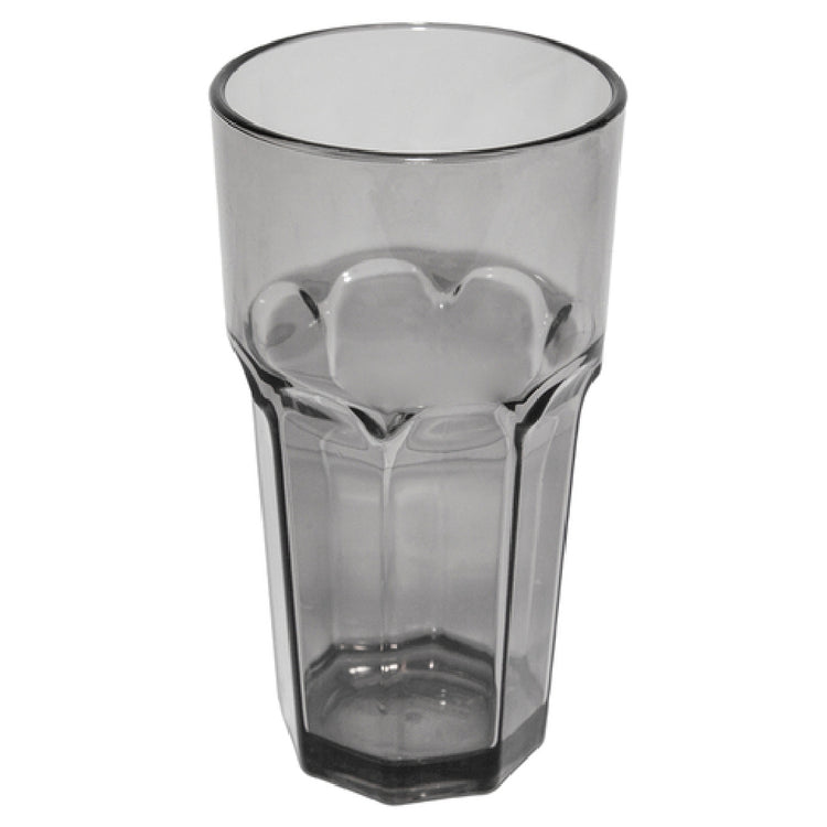 The Carlisle 581618 Carlisle Louis™ Tumbler 16 Oz. (16.50 Oz. Flush Fill) Faceted Shape is a versatile and durable option for both commercial and personal use. Featuring a distinctive faceted design, this tumbler offers a visually appealing presentation that suits various settings, from casual dining to more formal occasions. Constructed from SAN (styrene acrylonitrile), it is smoke-tinted, BPA-free, and NSF certified, ensuring safety and compliance with industry standards. The tumbler boasts a generous volume capacity with its 16 oz. standard fill and 16.50 oz. flush fill, catering to different beverage serving needs. It is engineered to withstand a broad usable temperature range from 0°F to 180°F, making it suitable for a variety of hot and cold beverages. Its dishwasher-safe design ensures easy cleaning, while its stain, break, and chip-resistant properties contribute to long-lasting usage. Additionally, the tumbler is stackable, facilitating convenient storage in busy environments. Offered in packs of 24, the Carlisle Louis™ Tumbler is a practical choice for restaurants, cafeterias, and hospitality settings seeking reliable and eco-friendly glassware. Its recyclable nature further enhances its appeal, aligning with sustainable practices in food service operations.