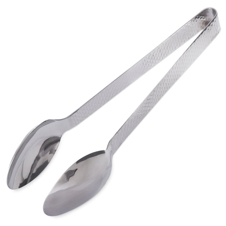 The Carlisle 60211 Carlisle Terra™ Tongs 12"L Dishwasher Safe are meticulously crafted culinary tools, designed to elevate the efficiency and style of professional and home kitchens alike. Measuring 12 inches in length, these tongs are constructed from high-quality stainless steel, ensuring durability and resistance to corrosion. The hammered mirror finish not only adds a touch of elegance but also enhances grip and control while handling food. A key feature of these tongs is their dishwasher-safe capability, providing convenience for busy culinary environments by simplifying the cleaning process. The Carlisle Terra™ Tongs are sold with a minimum order of 12 units, making them ideal for large-scale operations such as catering companies, restaurants, and hotel kitchens that require reliable and consistent kitchen utensils. The thoughtful design combines both aesthetic appeal and practicality, making the Carlisle Terra™ Tongs a versatile choice for any food preparation setting. These tongs are particularly beneficial for segments that prioritize hygiene and efficiency without compromising on style, as their material and finish ensure they meet rigorous kitchen standards. With a balance of form and function, these tongs contribute significantly to streamlined operations and presentation in diverse culinary contexts.