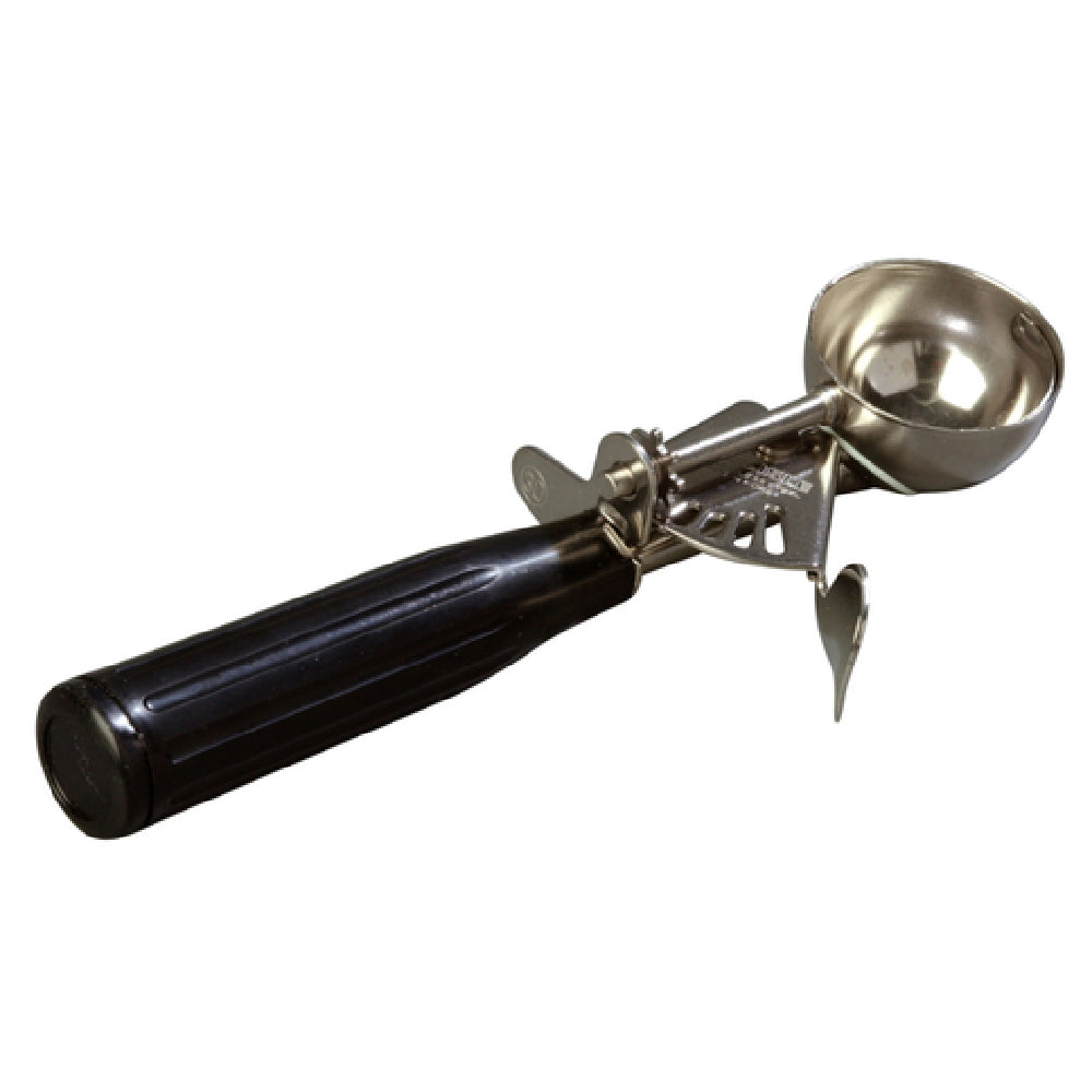 The Carlisle 60300-30 Carlisle Disher Size-301-1/4 Oz 1-3/4" Dia. Round Bowl is a premium kitchen tool designed for precise portion control, perfect for various professional segments such as catering, baking, and restaurant services. Featuring a size-30 disher with a 1-1/4 oz capacity, it is ideal for serving consistent portions of soft foods like mashed potatoes or ice cream. The 1-3/4" diameter round bowl is crafted from 18/8 stainless steel, ensuring durability and resistance to corrosion, which is crucial for long-lasting use in busy kitchen environments. The ribbed plastic handle offers a comfortable grip, reducing hand fatigue during repetitive scooping tasks, and is color-coded in black to easily identify the size among other kitchen tools. The capacity is stamped on the bail, providing quick reference to ensure accurate serving sizes. Dishwasher safe, this disher is easy to clean and maintain, upholding hygiene standards crucial in foodservice operations. Its NSF certification further emphasizes its compliance with public health and safety standards, making it a reliable choice for professionals seeking efficiency and reliability in their kitchen operations. The Carlisle 60300-30 disher combines precision, durability, and ease of use, catering to diverse needs within the culinary industry.