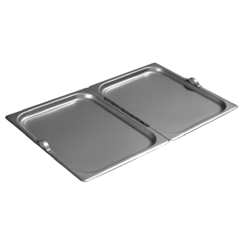 The Carlisle 607000H Carlisle DuraPan™ Steam Table Pan Cover Full Size Solid is a durable and efficient solution for maintaining the temperature and freshness of food in various foodservice environments. Crafted from 24 gauge 18/8 stainless steel, this high-quality cover is designed for lasting performance and resilience. The full-size, solid, flat design ensures maximum heat retention, while the center-hinged feature provides convenient access without completely removing the lid. This practical design is enhanced by end handles, which facilitate safe and easy handling, catering to the needs of busy kitchens. The Carlisle DuraPan™ cover is also dishwasher safe, simplifying cleaning and maintenance tasks, making it ideal for both high-volume commercial kitchens and catering operations where efficiency and hygiene are paramount. Its robust construction and thoughtful design cater to the rigorous demands of the foodservice industry, providing a reliable and versatile option for chefs and kitchen staff seeking to maintain quality and service standards. With its unique combination of functionality and durability, the Carlisle 607000H Carlisle DuraPan™ Steam Table Pan Cover Full Size Solid is an essential component for any steam table setup.