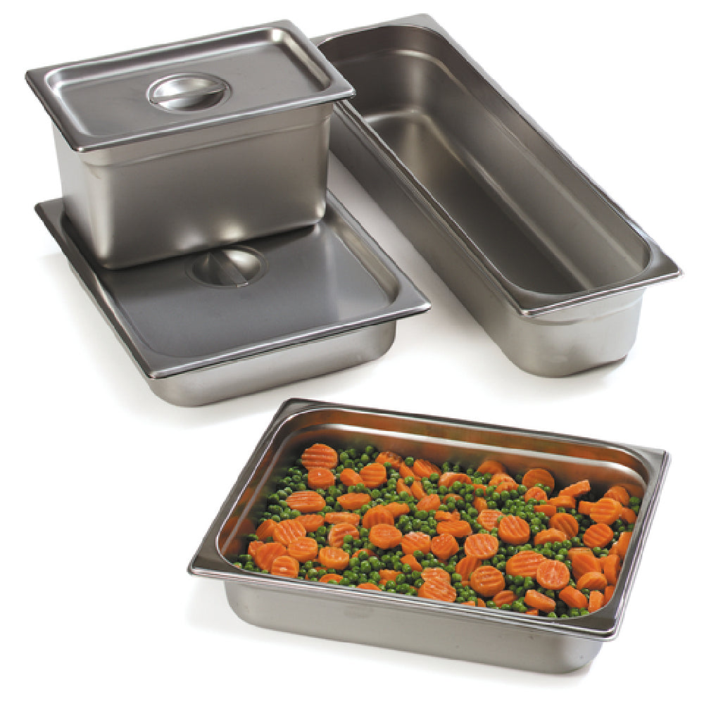 The Carlisle 607120C Carlisle DuraPan™ Steam Table Pan Cover 1/2-size Solid is an essential accessory for maintaining optimal food temperature and quality in various culinary environments. Crafted from 24 gauge 18/8 stainless steel, this pan cover is designed to withstand the demands of professional kitchens. The solid, flat design ensures complete coverage for 1/2-size pans, enhancing thermal retention and preventing contamination. The lift-off feature offers easy access to the contents, while the recessed handle provides a secure grip, minimizing the risk of mishandling. This cover is dishwasher safe, facilitating hassle-free cleaning and maintenance, and it meets NSF standards, attesting to its compliance with sanitation requirements. Whether used in restaurants, catering services, or buffet settings, the Carlisle DuraPan™ Steam Table Pan Cover is a reliable solution for chefs and foodservice professionals seeking durability and efficiency in their operations.