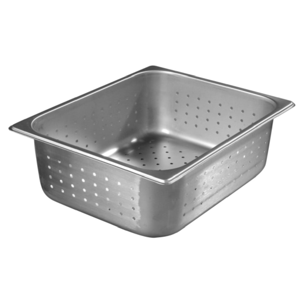 The Carlisle 607124P Carlisle DuraPan™ Steam Table Pan 1/2-size Perforated is a versatile and robust kitchen essential designed for professional food service environments. This 1/2-size pan, with a generous capacity of 7 quarts, is crafted from 24 gauge 18/8 stainless steel, ensuring durability and resistance to corrosion. Its perforated design allows for optimal steam circulation, making it ideal for steaming vegetables or other foods where drainage is needed. Measuring 4 inches deep, the pan features reinforced corners, providing additional strength and maintaining its shape under heavy use. The anti-jam stacking lugs prevent pans from sticking together, facilitating easy separation and storage, while its stackable nature optimizes space in busy kitchens. Designed with practicality in mind, the Carlisle DuraPan is dishwasher safe, simplifying the cleaning process. Furthermore, its NSF certification assures adherence to the highest public health and safety standards, making it a reliable choice for commercial kitchens, catering services, and buffet setups. This steam table pan's combination of strength, practicality, and compliance makes it a must-have for food service professionals seeking efficient and reliable kitchen solutions.