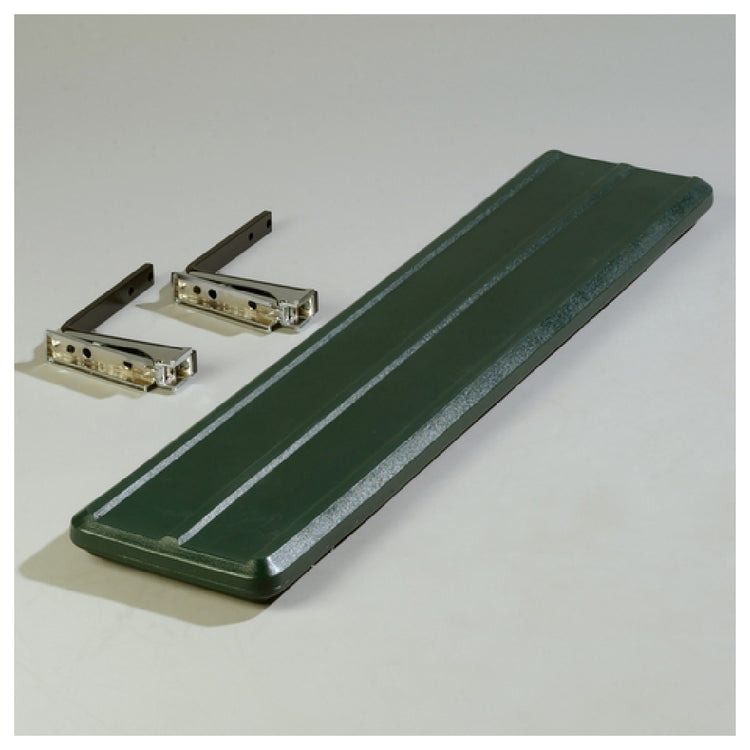 The Carlisle 662008 Carlisle SixStar™ Food Bar Tray Slide Drop Down Design Solid is a meticulously engineered component essential for efficient food service operations. With dimensions of 44 inches in width, 9 inches in depth, and 2 inches in height, this tray slide is designed to seamlessly integrate with food bars, specifically fitting model 6605. Made from high-quality polyethylene, it is capable of withstanding extreme temperature variations from -40°F to 180°F, ensuring durability and reliability in diverse environments. This feature makes it ideal for both refrigerated and heated applications, catering to a wide range of food service scenarios. The tray slide's drop-down design facilitates easy access and space optimization, enhancing the workflow in busy settings. Finished in a forest green color, it offers an aesthetic appeal that complements various food bar designs. Adhering to NSF standards, this product guarantees compliance with strict public health guidelines, and being BPA Free underscores its commitment to safety and quality. Proudly made in the USA, the Carlisle 662008 tray slide represents a fusion of robust construction and functional design, tailored to meet the rigorous demands of the food service industry while maintaining a focus on user safety and operational efficiency.