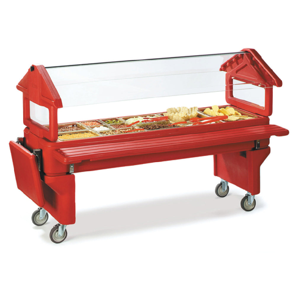 The Carlisle 662505 Carlisle SixStar™ Food Bar End Shelf is a drop-down style accessory with precise dimensions of 20-5/8"L x 15-7/8"W x 1-3/4"H, designed to fit seamlessly with all SixStar™ food bars. This particular end shelf stands out in the industry due to its impressive temperature endurance, withstanding a range from -40°F to 180°F, which ensures its durability in various environments. Manufactured from high-quality recyclable polyethylene, it combines sustainability with robustness, making it both an eco-friendly and long-lasting choice for food service professionals. The shelf's striking red color adds a vibrant touch, enhancing the aesthetic appeal of any food bar setup. Additionally, it carries the NSF certification, highlighting its compliance with public health and safety standards, and proudly boasts a BPA-free construction, emphasizing health-conscious manufacturing practices. Produced in the USA, the Carlisle SixStar™ Food Bar End Shelf is tailored to meet the demands of different segment markets, including restaurants, catering services, and buffet settings, where efficiency and reliable performance are paramount. Its integration into food service operations enhances organizational capacity, providing a practical solution for extending display and storage options.