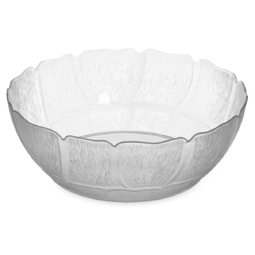 The Carlisle 691407 Carlisle Petal Mist® Bowl 5.6 Qt. 12" Dia. is a versatile serving solution, expertly crafted for both aesthetic appeal and practical functionality. With a capacity of 5.6 quarts and a diameter of 12 inches, this bowl is designed to accommodate various culinary needs, making it suitable for catering services, buffets, and high-traffic dining establishments. Its distinctive floral-shaped edge adds an elegant touch, enhancing table presentations. Constructed from durable polycarbonate, the bowl boasts a clear, textured finish that is resistant to stains, breaks, and chips, ensuring longevity even under frequent use. This robust material also makes the bowl both freezer and dishwasher safe, providing convenience and ease of maintenance in fast-paced environments. Furthermore, the Carlisle Petal Mist® Bowl is NSF certified, confirming its adherence to strict standards of safety and quality. Proudly manufactured in the USA, this bowl combines style, resilience, and functionality, catering to the diverse needs of the food service industry where presentation and durability are paramount. Whether used in upscale events or everyday dining settings, the Carlisle 691407 bowl delivers a reliable and stylish serving option that stands the test of time.