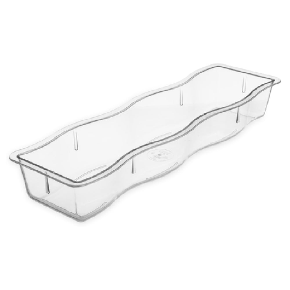 The Carlisle 698207 Carlisle Modular Displayware Pan 4.45 Qt. 1/2 Long Size is a versatile and durable solution for various food service environments. With a capacity of 4.45 quarts and a 1/2 long size, this pan is designed to meet the demands of professional kitchens and catering services. Its unique wave shape with a wavy edge provides an aesthetically pleasing presentation, enhancing the visual appeal of any buffet or display setting. Constructed from clear polycarbonate, this displayware pan is stain, break, and chip resistant, ensuring longevity and resilience in high-use settings. It is dishwasher safe, accommodating effortless cleaning and maintenance. The pan is engineered to withstand temperatures ranging from 40°F to 212°F, making it suitable for both cold and hot applications. Additionally, it is recyclable, reflecting a commitment to environmental sustainability. Certified by NSF, this pan meets strict standards for public health protection, making it a reliable choice for institutions prioritizing safety and compliance. The Carlisle 698207 is available with a minimum order of 12, catering to the needs of large-scale operations. This modular displayware pan is an essential component for any food service industry professional seeking durability, functionality, and style.