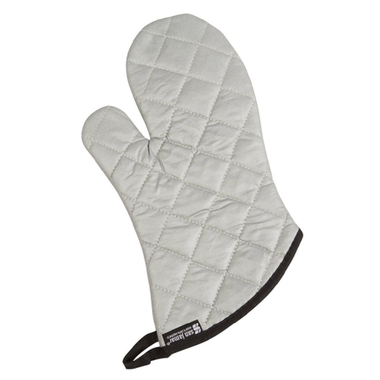 The Carlisle 801SG15 San Jamar Oven/Freezer Mitt is a versatile 15-inch protective glove, expertly crafted to withstand extreme temperature ranges from 0°F (-18°C) to 400°F (204°C) for up to 15 seconds. This mitt is designed with a non-stick coating, allowing it to easily rinse clean, making it an excellent choice for both commercial and residential kitchens. The inclusion of a hanging loop adds convenience, ensuring that the mitt can be easily stored when not in use. Constructed from durable silicone, this silver mitt provides reliable heat resistance while maintaining flexibility and comfort for the user. Ideal for professional chefs and home cooks alike, the Carlisle 801SG15 offers robust protection whether you’re handling hot ovens or cold freezers. Its unique properties cater to a wide range of culinary applications, enhancing kitchen safety and efficiency across various segments of the foodservice industry. The mitt’s design not only emphasizes safety and ease of maintenance but also maintains a sleek and functional aesthetic, making it a valued addition to any kitchen environment.