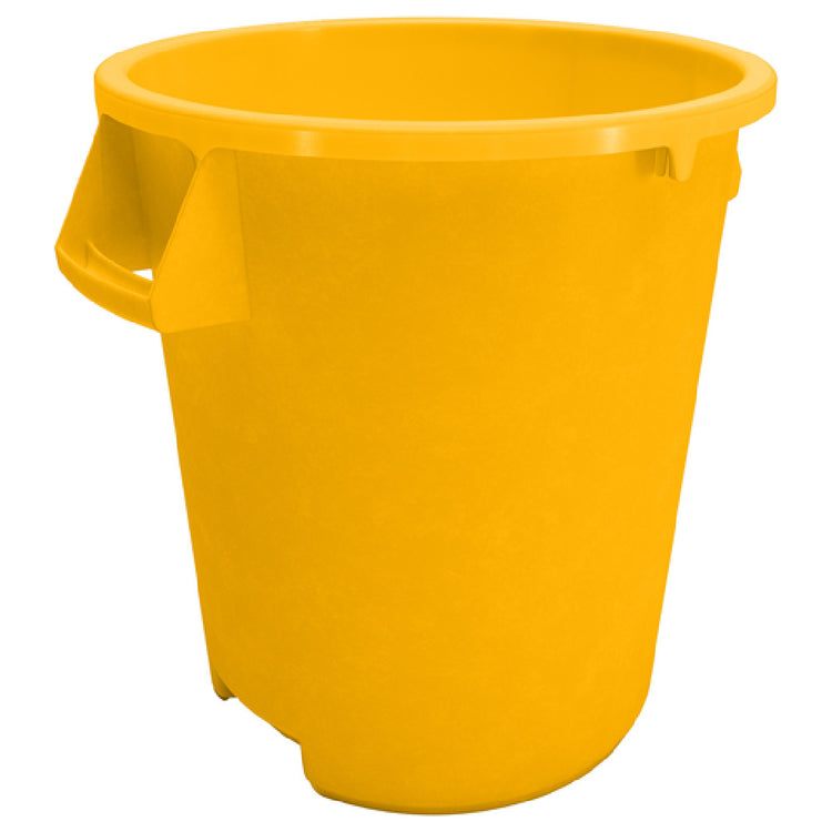 The Carlisle 84101004 Carlisle Bronco™ Waste Bin Trash Container is a versatile and durable solution designed for efficient waste management across various industries. With a 10-gallon capacity, this round container is perfect for environments that require frequent waste disposal. Measuring 17-9/20 inches in height and 15-3/5 inches in diameter, its size makes it suitable for a range of spaces. The container is stackable, featuring double-reinforced stress ribs for enhanced strength and longevity, making it ideal for heavy-duty use. Ergonomic handles and integrated bag cinches provide ease of use and secure bag placement, while the drag skids and deep handholds on the base ensure effortless maneuvering and handling. Constructed from robust polyethylene, this bin promises durability and resistance to wear and tear. Its vibrant yellow color enhances visibility, ensuring it stands out in busy environments. Certified by NSF, it meets high standards for public health and safety, and as a product made in the USA, it assures quality and reliability. The Carlisle Bronco™ Waste Bin is an excellent choice for commercial kitchens, healthcare facilities, and janitorial services seeking a reliable and efficient waste management solution.