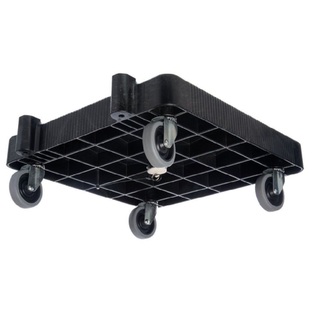 The Carlisle C223603 Carlisle Opticlean™ Glass Rack Dolly is a specialized platform designed for efficient transportation of glass racks. With a robust capacity of 350 lbs, this dolly is engineered to accommodate standard full-size racks, making it an essential tool in commercial kitchens, bars, and event settings. Its platform design includes a drain feature, which ensures easy maintenance and prevents water accumulation. Equipped with four 4-inch ball bearing swivel casters, this dolly offers smooth maneuverability and stability. The non-marking rubber wheels ensure that floors remain unscathed during transport. Constructed from durable polypropylene, the dolly boasts a sleek black finish that complements professional environments. Although it is without a handle, its single-stack capability optimizes space and functionality. The Carlisle Opticlean™ Glass Rack Dolly is tailored for those in the hospitality industry who require reliable and efficient glassware transportation solutions, ensuring that glass racks are handled with care and precision across various settings.
