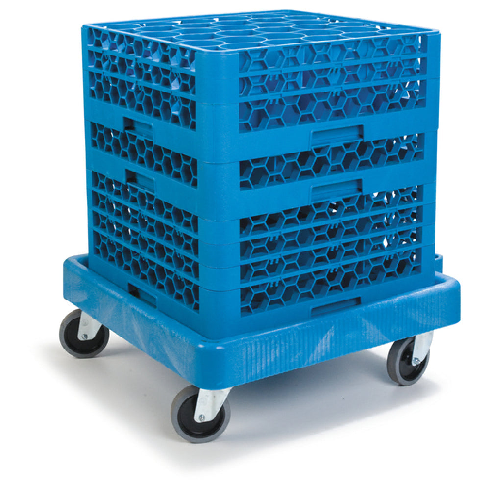 The Carlisle C223614 Carlisle Opticlean™ Glass Rack Dolly 350 Lb. Capacity Without Handle is designed to efficiently support glassware transportation needs across various sectors of the food service and hospitality industry. With a substantial load capacity of 350 pounds, this dolly ensures stability and reliability when moving standard full-size glass racks. The platform design incorporates a drain feature, enhancing convenience during rack handling. It is engineered for single-stack accommodation, optimizing space and functionality in professional settings. Equipped with four 4-inch ball bearing swivel casters, each featuring non-marking rubber wheels, this dolly offers smooth maneuverability and protection for floors. Constructed from durable polypropylene, it provides long-lasting use and is available in a practical blue color. While the dolly is designed without a handle, its robust build and practical features streamline the process of organizing and transporting glassware, making it a versatile solution for restaurants, hotels, and catering services looking to enhance operational efficiency.
