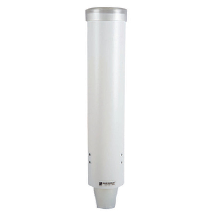 The Carlisle C3165WH San Jamar Water Cup Dispenser Medium Wall Mount is a versatile and practical solution for efficiently dispensing water cups in various settings, including offices, healthcare facilities, and public spaces. Designed for wall mounting, this pull-type dispenser features a 16-inch-long tube, ensuring ample storage capacity for cups. It is top-loading, providing easy refilling access, and is self-adjusting, accommodating different cup sizes with ease. The dispenser is equipped with a transparent flip cover, allowing for easy monitoring of cup inventory while maintaining hygiene. Constructed from durable plastic, it is designed to fit flat bottom cups or cone cups ranging from 4 to 10 ounces, with rim diameters between 2-1/2 inches to 3-1/4 inches. The white color of the dispenser offers a clean and professional appearance, seamlessly blending into a variety of environments. The Carlisle C3165WH San Jamar Water Cup Dispenser offers a reliable and efficient cup dispensing solution, catering to the needs of businesses and institutions looking for a durable and adaptable product to enhance their beverage service capabilities.