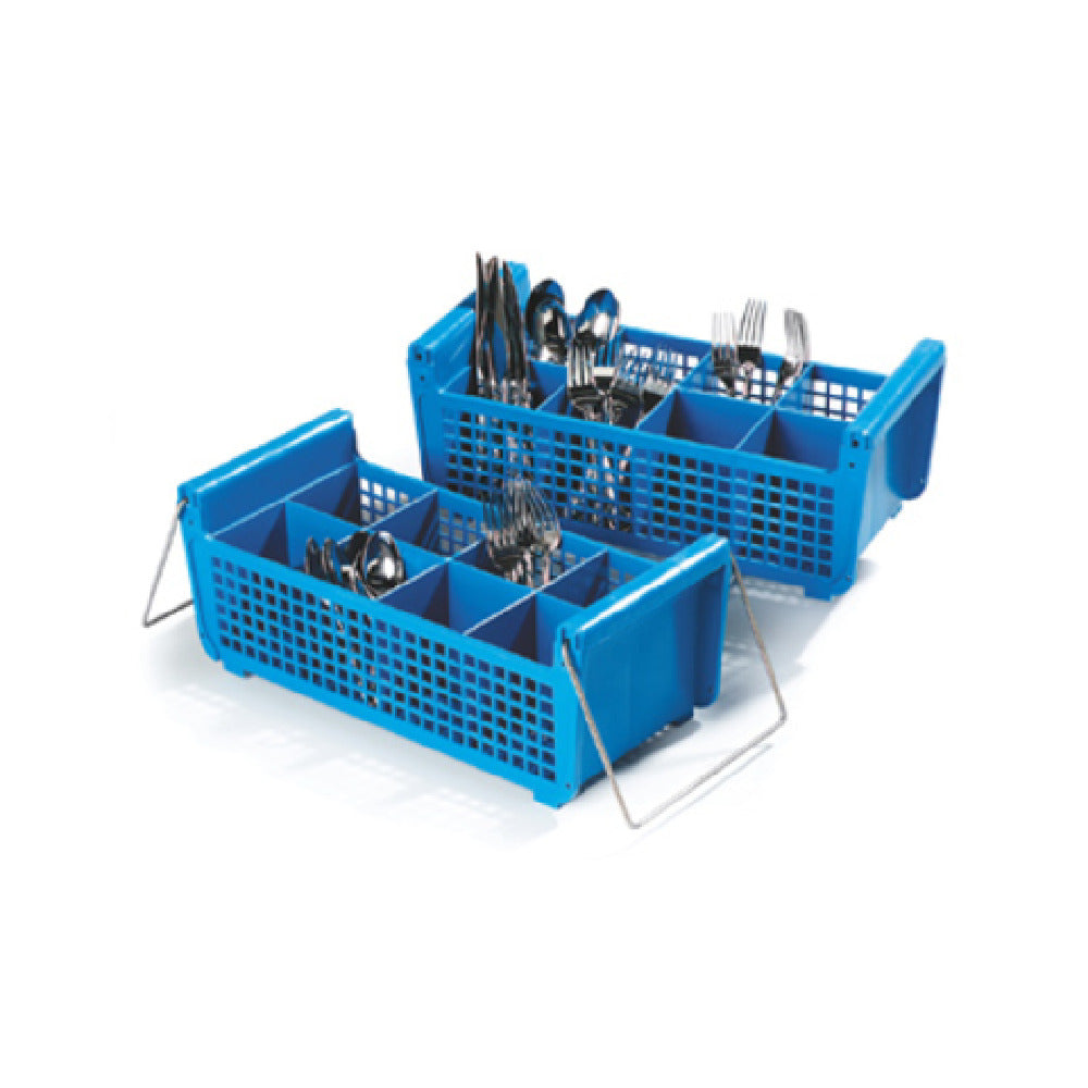 The Carlisle C32P214 Carlisle OptiClean™ Perma-San™ Flatware Basket is a meticulously designed piece of equipment that caters to the nuanced needs of the food service industry. Measuring 17-1/16" x 7-3/4" x 6-7/8", this flatware basket is crafted with an open design that facilitates easy cleaning and efficient drying, enhancing the hygiene standards within any establishment. The basket is divided into 8 compartments, each sized at 3-1/2" x 3-1/2", providing ample space for sorting and organizing flatware effectively. The inclusion of stainless steel wire handles ensures durable and comfortable handling, making it a reliable tool for busy kitchens. Constructed from resilient, stain-resistant polypropylene, this basket is not only robust but also easy to maintain, retaining its professional appearance over time. Its striking blue color adds a touch of vibrancy to the kitchen environment. Furthermore, the basket is NSF certified, which underscores its compliance with stringent health and safety standards. The Carlisle C32P214 is ideal for a wide range of commercial kitchens, from bustling restaurants to institutional kitchens, providing an exceptional combination of organization, durability, and hygiene all while ensuring that flatware is kept in top condition during washing and storage processes.