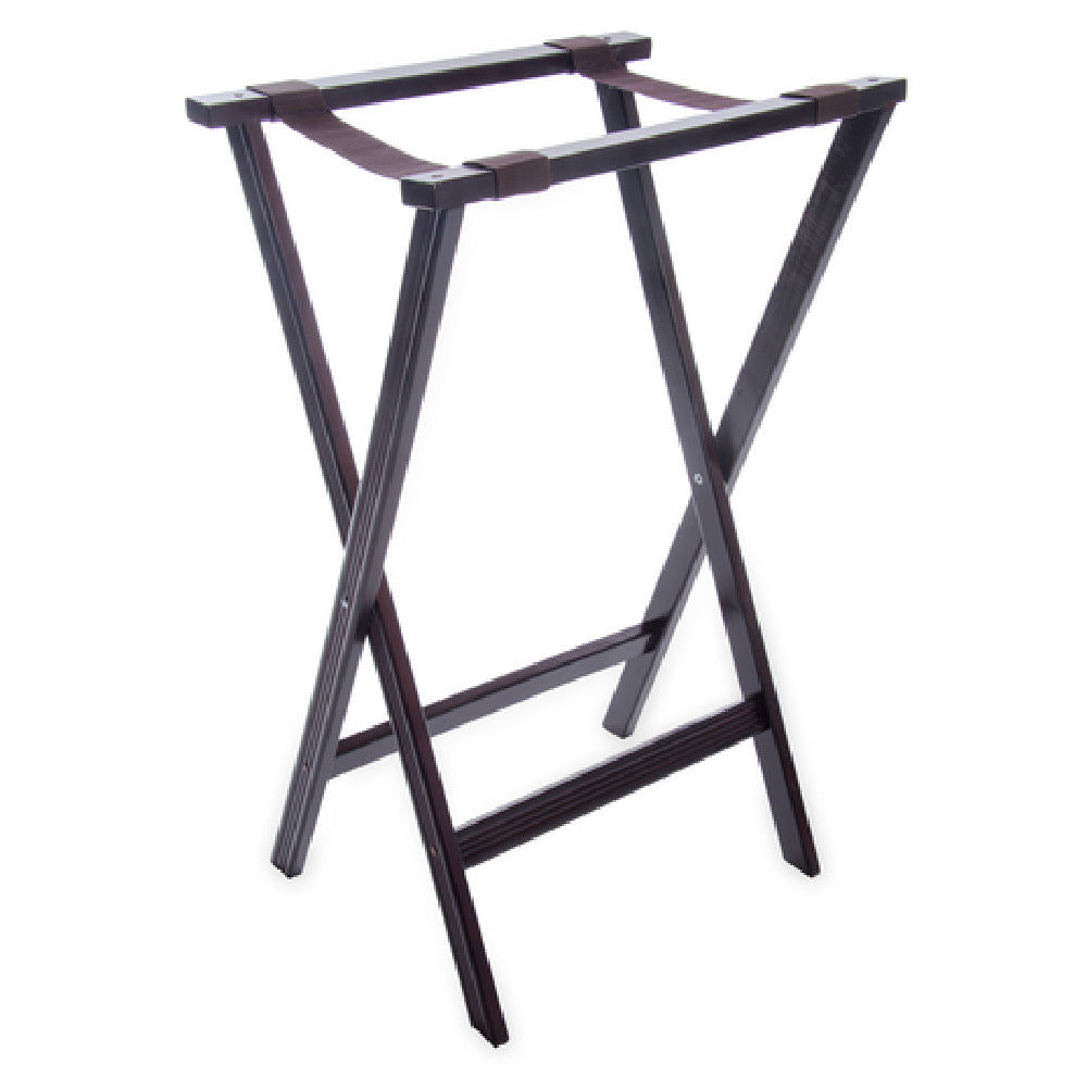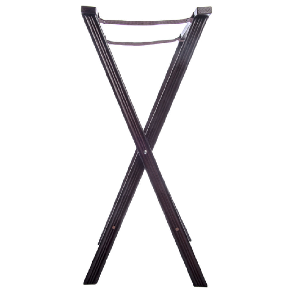 The Carlisle C3620W11 Carlisle Folding Tray Stand is a versatile and robust piece of equipment ideal for the food service industry. With dimensions of 20 inches in length, 18 inches in width, and 30 inches in height, this stand is designed to support trays efficiently in a variety of settings, from bustling restaurants to catered events. It features two black straps providing additional security for trays, ensuring stability during use. The reinforced joints and cross-bar supports enhance the stand's durability, making it a reliable choice for rigorous daily use. Crafted from kiln-dried hardwood, the stand boasts a beautiful walnut finish, adding an element of sophistication to its functional design. This combination of aesthetics and structural integrity makes the stand suitable for both high-volume establishments and more intimate settings, offering flexibility across different market segments. The Carlisle C3620W11 not only meets practical needs with its sturdy construction and reliable support system but also complements the decor of any professional dining environment with its elegant walnut appearance.