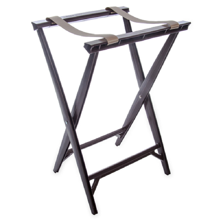 The Carlisle C3630W11 Carlisle Folding Tray Stand is a versatile and durable solution for various food service environments, measuring 19-3/4 inches in length, 16-6/9 inches in width, and 30-1/2 inches in height. This folding tray stand is designed with two black straps and cross-bar supports, ensuring stability and strength during use. Constructed from non-porous, non-corrosive polypropylene, this tray stand is both resilient and easy to clean, making it ideal for high-traffic areas in restaurants, hotels, or catering events. The walnut finish provides an aesthetically pleasing appearance, suitable for upscale dining settings. Importantly, the tray stand is BPA free, aligning with health-conscious and environmentally friendly practices. Proudly made in the USA, the Carlisle C3630W11 combines practicality with quality craftsmanship, serving as an essential accessory in the food service industry. Its foldable design guarantees convenient storage and transport, accommodating the dynamic needs of busy service professionals who require reliable and functional equipment. Whether used in casual or formal dining settings, this tray stand's robust construction and thoughtful design make it a trusted choice for effectively supporting trays and facilitating smooth service operations.