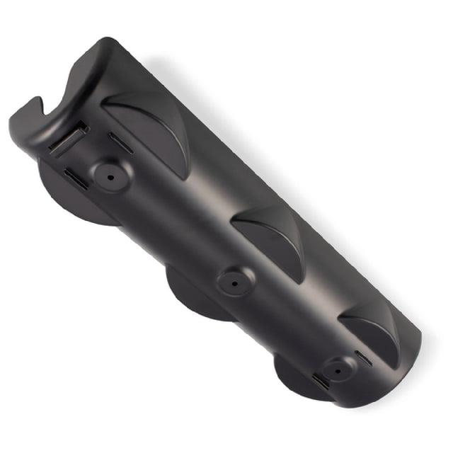 The Carlisle C8500L San Jamar Lid Organizer is a meticulously designed organizational tool, measuring 18-1/4" x 5-1/4" x 3-1/4", that serves the essential function of managing cold, hot, and domed lids. This versatile unit is compatible with all Wireworks™ Dispensers, providing a seamless integration into existing systems for restaurants, cafeterias, or fast-food chains. Constructed from durable ABS plastic, the organizer is finished in an elegant black, ensuring both resilience and a professional aesthetic. With its precise dimensions and robust material, this lid organizer is engineered to withstand the rigors of high-traffic environments while maintaining order and accessibility of various lid sizes. Its utility spans across different market segments, offering an effective solution for venues requiring efficient lid storage and quick access in beverage service areas. By consolidating multiple lid types in one compact unit, the Carlisle C8500L enhances operational efficiency and workspace organization. This product not only supports streamlined service flow but also complements the overall functionality of any food service establishment aiming to improve customer experience and service speed through well-managed and easily accessible drink station setups.