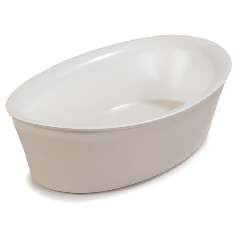 The Carlisle CM1402439 Carlisle Designer Coldmaster® Coldcrock 5 Qt. features a sleek oval design with dimensions of 19-1/2"L x 10-3/4"W x 4-3/8"H, providing a substantial 5-quart capacity suitable for various professional catering and food service environments. This coldcrock is constructed from durable, impact-resistant ABS plastic, offering longevity and resilience under frequent use. Its innovative refrigerant gel insulation ensures temperature retention for extended periods, making it an excellent choice for preserving chilled food items without the need for electricity. The white-champagne color adds a touch of elegance, seamlessly integrating with upscale dining settings. Designed with practicality in mind, the Coldmaster® Coldcrock is dishwasher safe, promoting ease of maintenance and hygiene. As an environmentally conscious option, this product is recyclable, aligning with sustainable practices within the industry. Certified by NSF, it meets rigorous public health standards, ensuring safe food storage and handling. This special order item requires a minimum purchase of 400 units, with a three-week lead time, catering to bulk procurement needs. The Carlisle Designer Coldmaster® Coldcrock is an indispensable asset for food service sectors requiring reliable, aesthetic, and sustainable cold storage solutions.