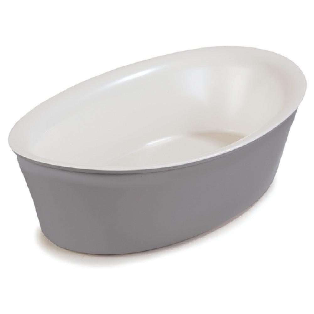 The Carlisle CM1402441 Carlisle Designer Coldmaster® Coldcrock 5 Qt. is a specialized refrigerated container crafted with precision for diverse industry segments requiring efficient cold storage solutions. Measuring 19-1/2" in length, 10-3/4" in width, and 4-3/8" in height, its oval design maximizes space utilization and fits seamlessly into various refrigeration setups. Constructed from impact-resistant ABS plastic, this Coldcrock ensures durability and longevity, making it an excellent choice for high-demand environments. Its refrigerant gel insulation is a standout feature, maintaining optimal cold temperatures for extended periods without the need for ice, thus ensuring the freshness and quality of stored items. The white-charcoal color scheme adds a touch of modernity, blending aesthetically with contemporary kitchen designs. As a dishwasher-safe and recyclable product, it supports eco-friendly practices and easy maintenance. The Carlisle CM1402441 is NSF certified, guaranteeing compliance with stringent public health and safety standards, which is critical for food service industries. Available as a special order item with a minimum order of 400 units and a lead time of three weeks, this Coldmaster® Coldcrock serves as a reliable, high-capacity solution tailored for professional catering services, hospitality sectors, and large-scale food preparation settings.