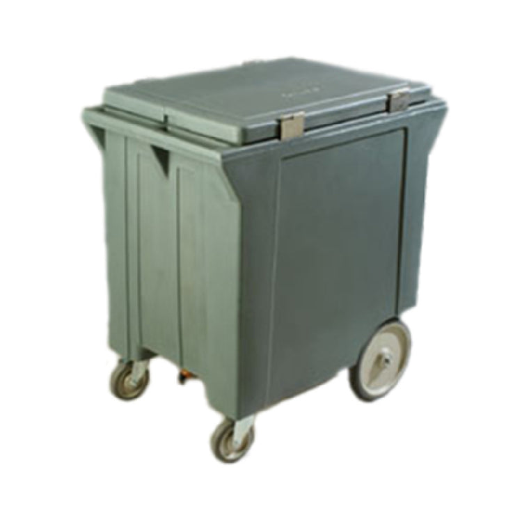 The Carlisle IC222059 Carlisle Cateraide™ Mobile Ice Caddy - 200 Lb. Capacity is a highly efficient and durable solution for transporting ice, ideal for catering services, restaurants, and event venues requiring mobility and convenience in ice management. With a substantial capacity of 200 lbs., this ice caddy is constructed with a durable polyethylene exterior, ensuring long-lasting use and resistance to stains and scratches. The insulated design helps maintain optimal ice temperatures, while the removable lid, reinforced with stainless steel hinges, allows for easy access and handling. Equipped with dual handles, it offers convenient maneuverability. The unit also includes a front drainage faucet for effortless draining and cleaning. Its sloped inside base promotes efficient ice dispensing. For superior mobility, it features two 10" non-marking back wheels and two front swivel casters, with one caster including a brake for secure stationary positioning. The slate blue finish adds a touch of professionalism to its appearance. Proudly made in the USA, the Carlisle IC222059 ice caddy is a reliable and practical choice for any establishment needing a robust and user-friendly ice transport solution.