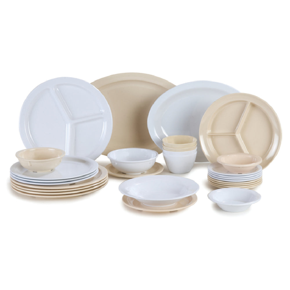 The Carlisle KL10802 Carlisle Kingline™ Nappie Bowl is a meticulously designed product catering to diverse industry needs with its 14-ounce capacity and 5-1/2 inch diameter, making it ideal for serving a variety of food portions. This bowl is crafted with a rolled edge, enhancing durability and resistance to scratches, stains, and chips, ensuring long-lasting use in demanding environments. Its ability to resist drawing heat or cold away from food maintains optimal serving temperatures, which is crucial for food service applications. The elevated foot design contributes to stability and effective stacking, optimizing space efficiency in storage. Constructed from a melamine gloss finish, the bowl not only presents a sleek, white appearance but also retains BPA-free and NSF certification, ensuring it meets health and safety standards. Additionally, it is dishwasher safe, supporting ease of cleaning without compromising the integrity of the material, and can withstand temperatures up to 212°F, allowing for versatile use across different settings. The Carlisle KL10802 is a valuable asset for restaurants, catering services, and institutional dining facilities, delivering quality and performance in a practical design.