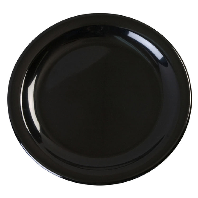 The Carlisle KL20403 Carlisle Kingline™ Pie Plate 6-1/2" Dia. Round is a meticulously engineered kitchenware piece designed for both commercial and home use. This round pie plate, with a diameter of 6-1/2 inches, features a narrow rim that enhances its aesthetic appeal while providing ample space for culinary creations. Constructed from high-quality melamine, it offers a gloss finish in a sleek black color, combining durability with style. The plate's material composition makes it scratch, stain, and chip resistant, ensuring long-lasting performance and maintaining its pristine appearance even after frequent use. This feature is particularly beneficial for high-traffic environments such as restaurants and catering services. The Carlisle KL20403 is dishwasher safe, adding convenience to clean-up routines. It is designed with an elevated foot, promoting stability and preventing heat or cold from drawing away from the food, thus maintaining desired food temperatures effectively. Safe for use in temperatures up to 212°F, it is versatile for various culinary applications. The Carlisle KL20403 is BPA Free and NSF certified, highlighting its commitment to safety and public health standards. With a minimum order of 48, this pie plate is a practical choice for bulk purchasing within the food service industry.