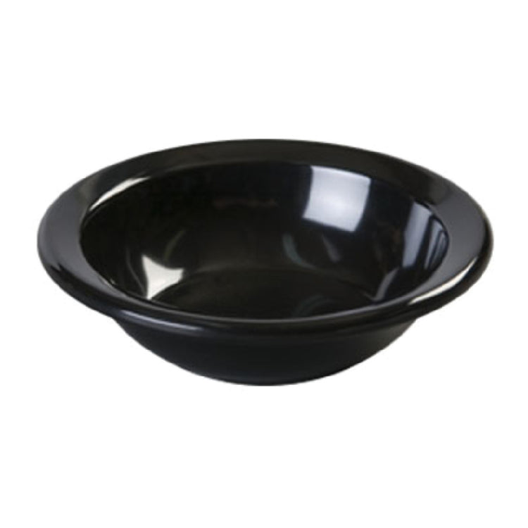 The Carlisle KL80503 Carlisle Kingline™ Rimmed Fruit Bowl is a versatile and durable solution for food service establishments, with a capacity of 4-3/4 oz and a diameter of 4-1/2 inches. This bowl features a narrow rim design, making it an attractive choice for presenting fruit and other small servings. Made from melamine with a gloss finish, it is scratch, stain, and chip resistant, ensuring longevity in high-demand environments. Notably, the bowl resists drawing heat or cold away from food, which maintains optimal temperatures for serving. The elevated foot design adds stability and enhances presentation, while its black color provides a sleek, modern look. The bowl is dishwasher safe and can withstand temperatures up to 212°F, making it suitable for various food service applications. In addition, it is BPA Free and NSF certified, ensuring it meets safety and health standards. This fruit bowl is an excellent choice for restaurants, cafes, and catering services seeking reliable and aesthetically pleasing tableware that enhances both functionality and presentation.