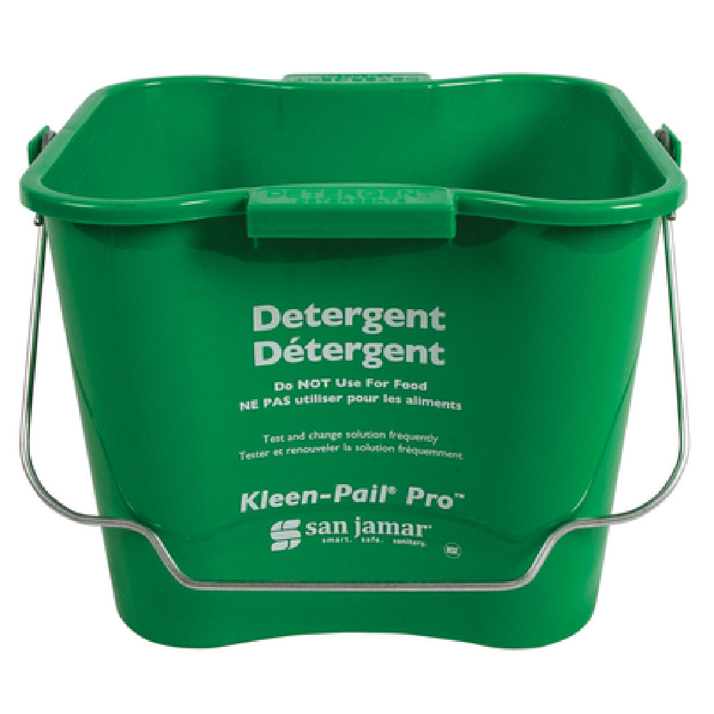 The Carlisle KPP256GN San Jamar Kleen-Pail® Pro™ 8 Qt. Rounded Corners is a meticulously designed cleaning tool, ideal for professional environments where hygiene and efficiency are paramount. This product features an 8-quart capacity, efficiently accommodating various cleaning solutions, and is constructed from durable plastic that meets HACCP guidelines and is NSF certified, ensuring it adheres to essential safety standards. The pail's design includes molded-in handles and a convenient drop handle, making it easy to transport and maneuver during use. Rounded corners enhance durability and prevent damage to surrounding surfaces. The pail also features embossed lettering and graduated markings, allowing for precise measurement and identification. It is equipped with debris-catching ribs and a raised bottom that aids in minimizing contact with surfaces, enhancing sanitation. Furthermore, the trilingual design ensures accessibility for a diverse workforce. Available in a distinctive green color, the pail is dishwasher safe, providing ease of cleaning and maintenance. This Kleen-Pail® Pro™ is an invaluable asset for restaurants, food service operations, and any establishment that prioritizes cleanliness and compliance with health standards.