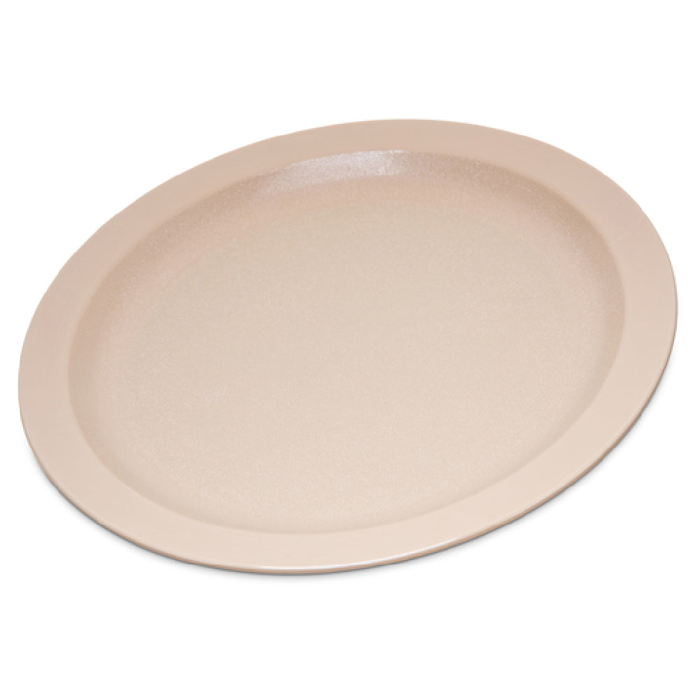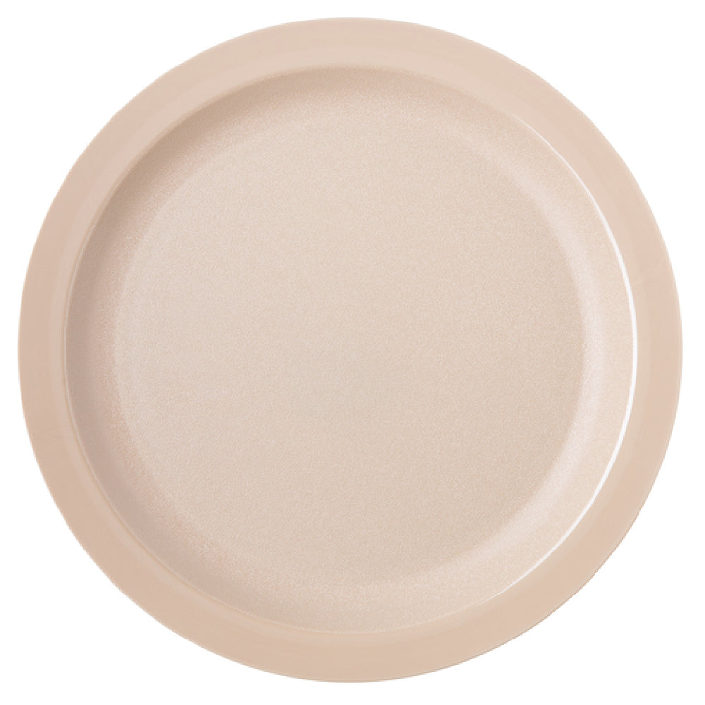 The Carlisle PCD21025 Carlisle Plate 10" Dia. Narrow Rim is a versatile and durable solution ideal for various segments of the food service industry. With a diameter of 10 inches and a narrow rim, this plate is crafted from polycarbonate tan material, which ensures long-lasting use with its stain, break, chip, and scratch-resistant properties. Designed to withstand a wide range of temperatures from -40°F to 212°F, it provides exceptional versatility in both hot and cold food contexts. The plate is also dishwasher safe, making cleaning and maintenance efficient and hassle-free. Stackable in design, it helps optimize storage space in busy kitchen environments. Its recyclable nature highlights its eco-friendly attribute, appealing to environmentally conscious businesses. Furthermore, the NSF certification establishes its compliance with high standards of health and safety, making it a reliable choice for restaurants, cafeterias, and catering services. The Carlisle PCD21025 is a well-rounded product that combines durability, functionality, and sustainability to meet the diverse needs of the food service industry.