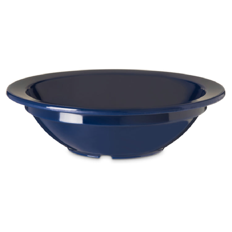 The Carlisle PCD30550 Carlisle Rimmed Fruit Bowl 5 Oz. 3-1/2" Dia. is an exemplary piece of serveware, specifically designed for durability and versatility across various settings. With a capacity of 5 ounces, it is ideal for serving fruit, desserts, and small appetizers. The bowl measures 3-1/2 inches in diameter and features a narrow rim, offering a contemporary and sleek look suitable for both casual and formal dining environments. Constructed from robust polycarbonate, this fruit bowl is stain, break, and chip resistant, ensuring long-lasting performance even with frequent use. Its capacity to withstand temperatures ranging from -40°F to 212°F makes it adaptable for both hot and cold applications, enhancing its utility in diverse culinary contexts. The bowl is dishwasher safe, facilitating easy cleaning and maintenance, and is stackable, optimizing storage efficiency in busy kitchens. Available in a striking dark blue color, the Carlisle Rimmed Fruit Bowl adds a touch of elegance to any table setting. Additionally, it is NSF certified, ensuring that it meets high standards of public health protection. The bowl is also recyclable, underscoring a commitment to sustainability. These combined features make the Carlisle Rimmed Fruit Bowl an attractive choice for restaurants, hotels, and catering services seeking reliable and stylish serveware.