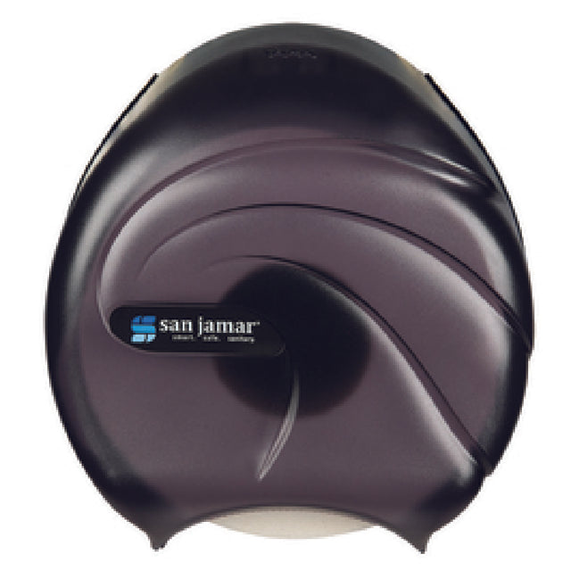 The Carlisle R2090TBK San Jamar Oceans® Bath Tissue Dispenser is a well-designed unit, measuring 10-1/4"W x 5-5/8"D x 12"H, crafted to accommodate a single 9" jumbo roll. Its translucent black pearl finish adds an element of modern elegance to any commercial restroom setting. This dispenser is a preferred choice for high-traffic restrooms in restaurants, schools, and office buildings due to its capacity to significantly reduce the frequency of refills. The unit's compact dimensions allow it to fit seamlessly into various space allocations without sacrificing functionality. Constructed by CFS Brands, known for their quality and reliability, the dispenser features a robust design that ensures long-lasting performance. The transparent material allows for easy monitoring of paper levels, which facilitates timely maintenance and refills. The Carlisle R2090TBK is particularly advantageous for facility managers seeking a cost-effective and efficient solution to tissue dispensing in busy environments, thereby enhancing user satisfaction and operational efficiency. Its design also complements the aesthetics of modern restrooms while providing practical functionality, making it an essential accessory for any business looking to maintain a clean and efficient restroom experience.