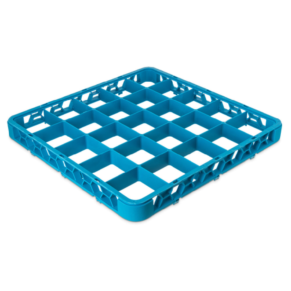 The Carlisle RE2514 Carlisle OptiClean™ Divided Glass Rack Extender Full-size is a highly efficient and durable solution engineered for the foodservice industry, particularly benefiting establishments with high glassware turnover. This full-size extender features 25 compartments, each measuring 3-1/2" x 3-1/2", providing ample space for securely holding various glass sizes and shapes. The positive stacking and four-way tracking design ensure stable stacking and easy handling, minimizing the risk of breakage during transportation and washing. Constructed from double-wall reinforced polypropylene, this glass rack extender offers long-lasting durability, withstanding the rigors of commercial use. Its textured finish not only adds a touch of sophistication but also enhances grip and handling safety. The eye-catching blue color is both functional and aesthetically pleasing, easily identifiable in busy environments. As an NSF-certified product, it meets stringent public health standards, ensuring safety and reliability in use. The Carlisle RE2514 glass rack extender is a valuable asset for restaurants, bars, and catering services, delivering unparalleled protection and efficiency for glassware management.