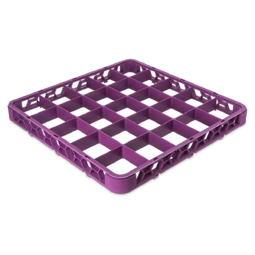 The Carlisle RE25C89 Carlisle OptiClean™ Divided Glass Rack Extender Full-size is specifically designed to enhance dishwashing efficiency by accommodating up to 25 compartments, each measuring 3-1/2" x 3-1/2". This extender is a full-size unit, expertly crafted for facilitating seamless operations in commercial settings such as restaurants, bars, and caterers. The glass rack extender is color-coded, allowing for easy identification and organization within busy kitchen environments. Its positive stacking feature ensures stability and secure storage, minimizing the risk of tipping or damage. Further enhancing its functionality, the extender's four-way tracking design allows for versatile arrangement, optimizing space utilization and accessibility during use. Constructed from double-wall reinforced polypropylene, the Carlisle RE25C89 promises durability and resistance to the rigors of daily use. The textured finish of the rack provides additional grip, reducing the likelihood of slips during handling. Available in a distinct lavender color, this extender is not only practical but also adds a visual ease of organization. The Carlisle RE25C89 is particularly valuable for establishments aiming to optimize glassware management, providing a reliable and efficient solution to meet the demands of high-volume service industries.