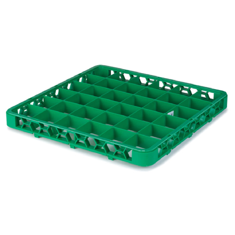 The Carlisle RE36C09 Carlisle OptiClean™ Divided Glass Rack Extender Full-size is an efficient and durable solution for professional kitchens and bars seeking to optimize their glassware storage and cleaning processes. This full-size rack extender is meticulously designed with 36 compartments, each measuring 3-1/2" x 3-1/2", providing ample space for organizing and protecting various glassware sizes during washing and storage. The innovative design includes color-coded compartments for easy identification and sorting, ensuring a streamlined workflow. One of its standout features is the positive stacking mechanism, which enables secure stacking and stability, essential for high-volume operations. The four-way tracking system further enhances its functionality by facilitating easy movement and alignment during storage or transport. Constructed from a double-wall reinforced polypropylene, this glass rack extender promises longevity and resistance to wear and tear, while its textured finish offers improved grip and handling. The product comes in an attractive green color, adding a touch of vibrancy to your kitchenware collection. Highly suitable for restaurants, bars, and catering services, the Carlisle RE36C09 is designed to meet the rigorous demands of the food and beverage industry, ensuring cleanliness, organization, and efficiency in glassware management.