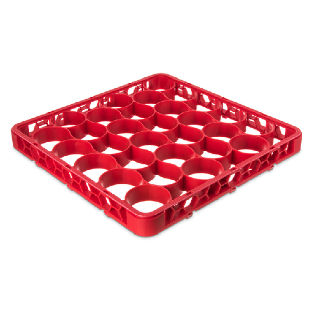 The Carlisle REW30SC05 Carlisle OptiClean™ NeWave™ Glass Rack Extender Full-size is a specialized, full-size glass rack extender designed to enhance dishwashing efficiency in commercial settings. This short rack extender features 30 compartments, making it suitable for organizing and cleaning a variety of glassware with ease. Constructed with a double-wall reinforced polypropylene material, the rack ensures durability and longevity, even with frequent use. The positive stacking capability facilitates stable and secure stacking, optimizing space in warewashing operations. The four-way tracking system allows for flexible movement and alignment, accommodating various dishwasher configurations. With its textured finish, the rack offers a non-slip grip, reducing the risk of accidental drops during handling. The striking red color not only adds a vibrant touch to your kitchen setup but also aids in quick identification and organization. Ideal for use in restaurants, bars, and catering services, the Carlisle REW30SC05 is a reliable choice for professionals seeking to maintain a high standard of cleanliness and efficiency in glassware management. Its thoughtful design and robust construction underline its practicality and value in demanding food service environments.