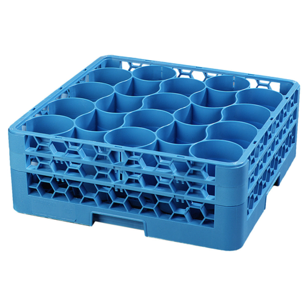 The Carlisle RW20-114 Carlisle OptiClean™ NeWave™ Dishwasher Glass Rack is a full-size, innovative solution in the warewashing industry, offering 20 rounded compartments designed to accommodate glasses with a diameter of up to 3-9/16 inches and an inside height of 6-3/4 inches. With its double-wall construction, this glass rack ensures durability and stability during use, while its quick-draining feature enhances efficiency in busy environments. The inclusion of (2) Sure-Lock extenders enhances versatility, allowing for secure stacking of additional racks. This product's positive stacking and four-way tracking features make it highly adaptable to various dishwasher systems. The comfort curve handles on all four sides provide ease of handling, improving user ergonomics. Made from polypropylene with a textured blue finish, this glass rack combines both aesthetics and practicality. It is certified NSF and BPA Free, underscoring its compliance with safety and health regulations, making it a reliable choice for professional kitchens. Proudly manufactured in the USA, the Carlisle RW20-114 glass rack presents a valuable asset for restaurants, bars, and catering services seeking efficient and safe glassware handling solutions.