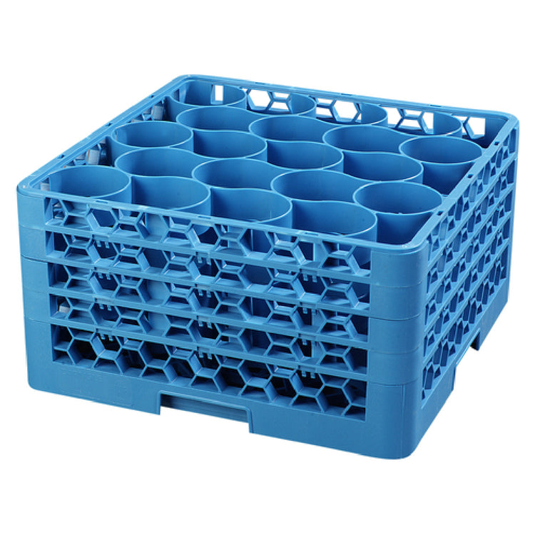 The Carlisle RW20-314 Carlisle OptiClean™ NeWave™ Dishwasher Glass Rack is a meticulously designed full-size glass rack comprising 20-rounded compartments, each ingeniously crafted to accommodate glasses up to 3-9/16 inches in diameter, with an inside height of 10-1/4 inches. This robust glass rack features four Sure-Lock extenders, ensuring a secure fit for a variety of glassware, making it an indispensable tool for efficient dishwashing operations. The double-wall construction contributes to its durability, providing long-lasting service in high-demand environments. Notably, this glass rack boasts quick draining capabilities and positive stacking, facilitating seamless integration into any workflow. The four-way tracking enhances operational efficiency, while the comfort curve handles on all four sides offer ease of use during transportation and handling. Constructed from polypropylene, it presents a textured finish in an attractive blue color. As an NSF certified and BPA-free product, it meets stringent safety and quality standards, making it a reliable choice for businesses prioritizing health and safety compliance. Proudly made in the USA, the Carlisle RW20-314 stands as a symbol of quality and innovation in dishwashing solutions, catering to diverse segment markets within the foodservice industry.