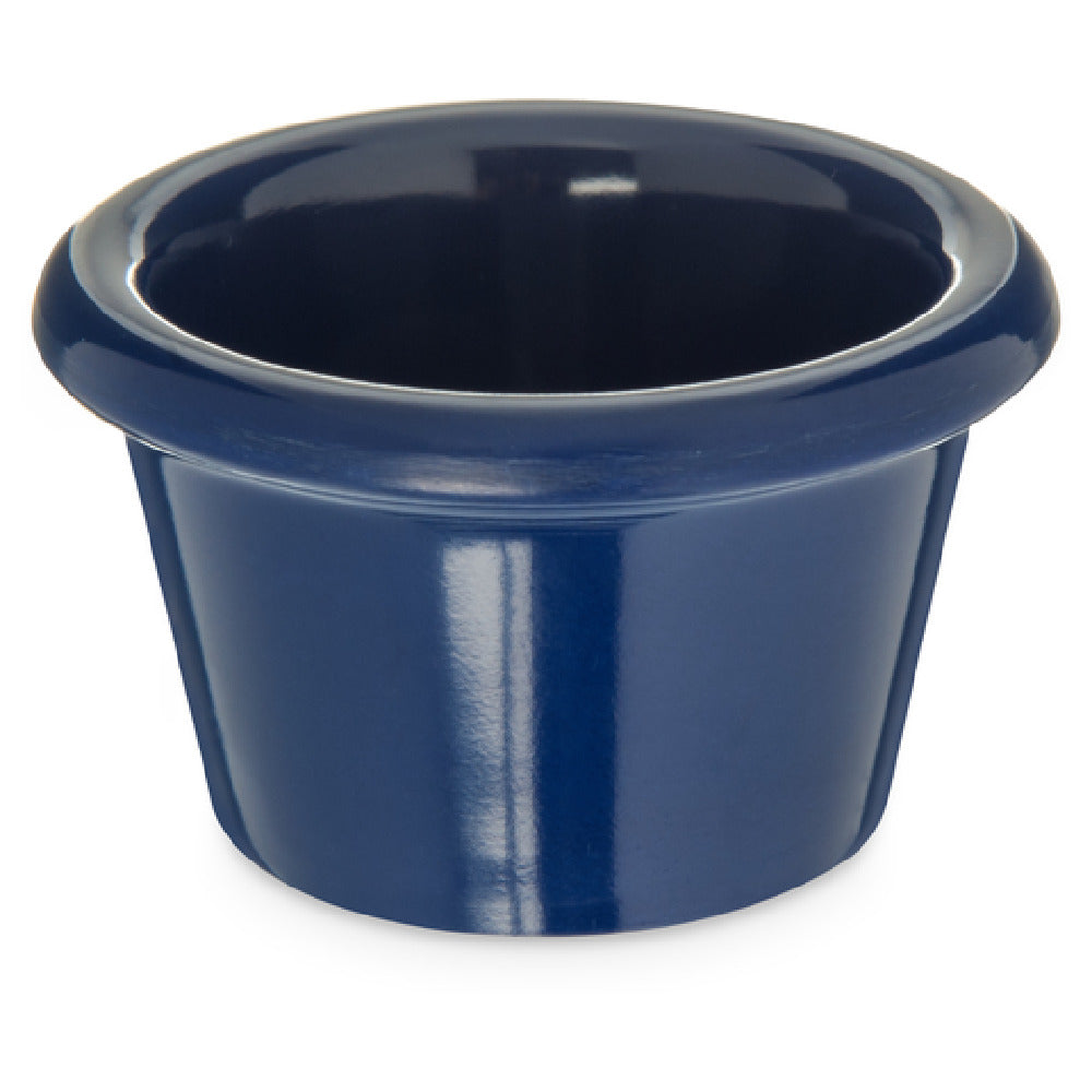The Carlisle S27560 Carlisle Ramekin 1-1/2 Oz. 2-1/2" Dia. is a versatile and durable solution for food service establishments requiring dependable serving ware. This ramekin, with a capacity of 1-1/2 ounces and a diameter of 2-1/2 inches, is crafted from melamine, offering a smooth, sturdy, and visually appealing surface. Its stain resistance ensures long-term use without discoloration, while the cobalt blue color adds a touch of elegance to any presentation. Designed to withstand temperatures up to 212°F, it guarantees safety and practicality in a wide range of dining environments, from high-end restaurants to casual cafeterias. The dishwasher-safe construction facilitates easy cleaning and maintenance, enhancing operational efficiency. Additionally, the stackable design allows for convenient storage, optimizing space in busy kitchens. As an NSF-certified product, the Carlisle S27560 meets rigorous public health and safety standards, making it an ideal choice for various segments within the food service industry. Whether used for individual condiments, sauces, or small side servings, this ramekin delivers both function and form, aligning with the diverse needs of chefs and caterers seeking reliable serving accessories.