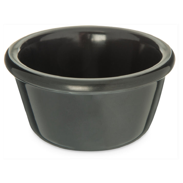 The Carlisle S28303 Carlisle Ramekin 4 Oz. 3-1/8" Dia. is a versatile addition to any commercial kitchen or dining establishment, blending functionality with durability. Crafted from robust melamine material, this ramekin is designed to withstand temperatures up to 212°F, making it suitable for a variety of culinary applications. Its smooth surface is not only visually appealing but also stain resistant, ensuring a lasting pristine appearance even after extensive use. This black ramekin has a 4 oz. capacity and a 3-1/8" diameter, making it ideally sized for serving sauces, dips, or individual dessert portions. Its stackable design optimizes storage space, contributing to an efficient kitchen environment. Additionally, this ramekin is dishwasher safe, simplifying the cleaning process and ensuring hygiene standards are effortlessly maintained. The Carlisle S28303 is BPA Free and NSF certified, signifying its adherence to rigorous safety and quality standards, which is crucial for food service professionals. Whether used in high-volume restaurants, catering services, or casual dining, this ramekin offers a practical solution for serving and presentation, embodying both elegance and reliability in its design and functionality. Its comprehensive features cater to the demands of diverse segments within the food industry.