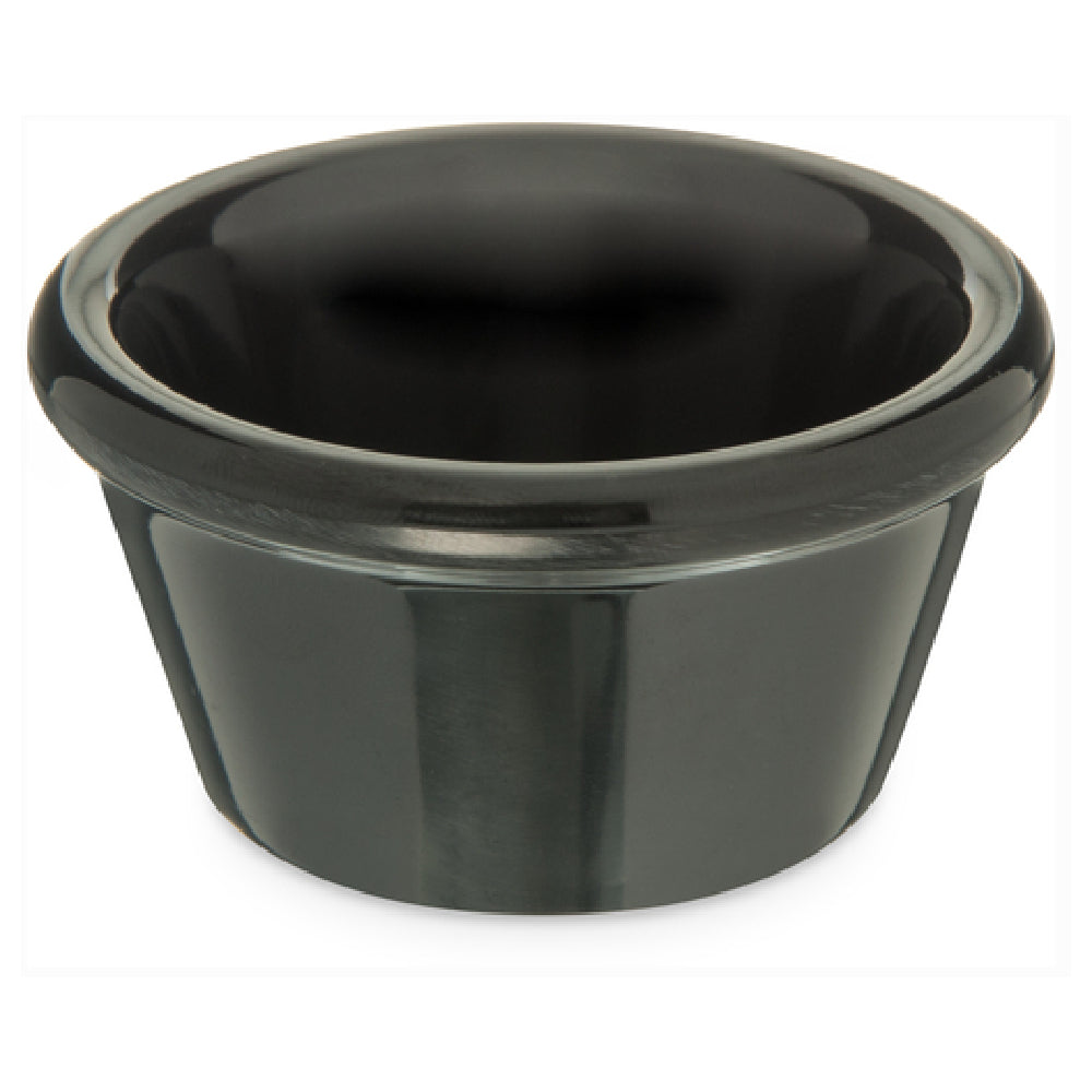 The Carlisle S85203 Carlisle Ramekin 2 Oz. 2-5/8" Dia. is a meticulously designed kitchen accessory tailored for the food service industry, offering both functionality and durability. Constructed from high-quality melamine, this ramekin is available in a sleek black finish, providing a sophisticated look for any dining setting. With a 2 oz. capacity and a diameter of 2-5/8", it is ideal for serving sauces, condiments, and small portions, making it versatile across different culinary applications. This ramekin is smooth in texture, reducing the risk of food adherence and ensuring easy clean-up. It is dishwasher safe, enhancing convenience for busy kitchen operations, and is stain resistant, maintaining its aesthetic appeal over time. Safety is a key feature, as it is BPA Free and can withstand temperatures up to 212°F, making it suitable for various serving requirements. Designed with practicality in mind, it is stackable, allowing for efficient storage and space management in professional kitchens. The product is NSF certified, signifying its compliance with rigorous health and safety standards, which is crucial for establishments prioritizing hygiene and safety. The Carlisle S85203 Ramekin is a reliable and practical choice for restaurants, caterers, and food service professionals seeking quality serveware solutions.
