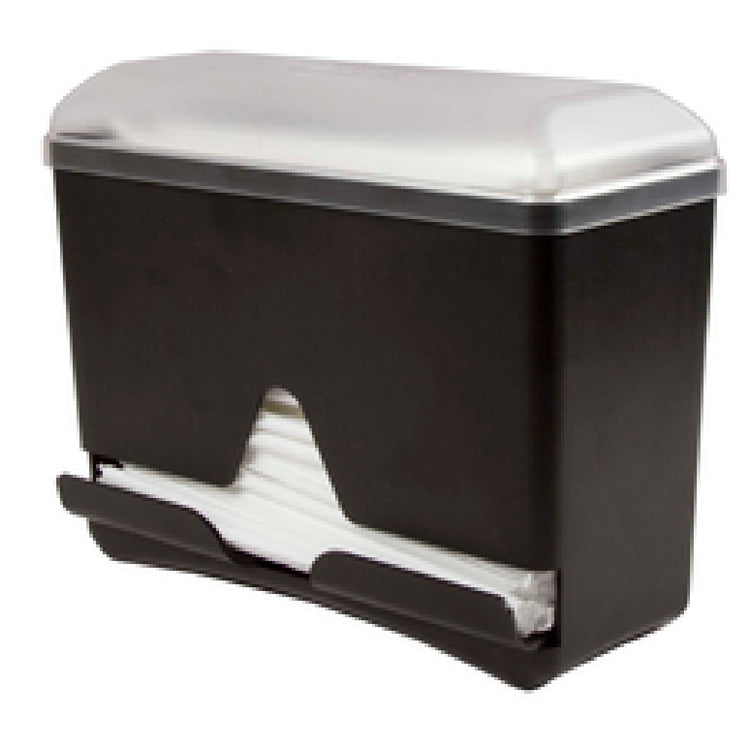 The Carlisle ST250 San Jamar Straw Dispenser is a precisely engineered tool designed for efficient straw dispensing in various settings. With dimensions of 8 inches in height, 10 inches in width, and a depth of 4-1/4 inches, this single-sided unit is compact yet capacious, accommodating up to 250 straws. Made from durable plastic, its sleek black body ensures longevity and ease of cleaning, making it suitable for high-traffic environments such as restaurants, cafes, and self-service stations. The clear lid not only allows for easy visibility of the straw supply but also adds a touch of elegance to its practical design, seamlessly fitting into any decor. This straw dispenser is tailored to meet the needs of businesses that prioritize both functionality and aesthetics. Its straightforward design ensures easy access to straws while maintaining an organized and tidy service area, enhancing the customer experience. By combining ample capacity with a minimal footprint, the Carlisle ST250 San Jamar Straw Dispenser is a versatile solution for establishments seeking to streamline their service process without sacrificing style or space.