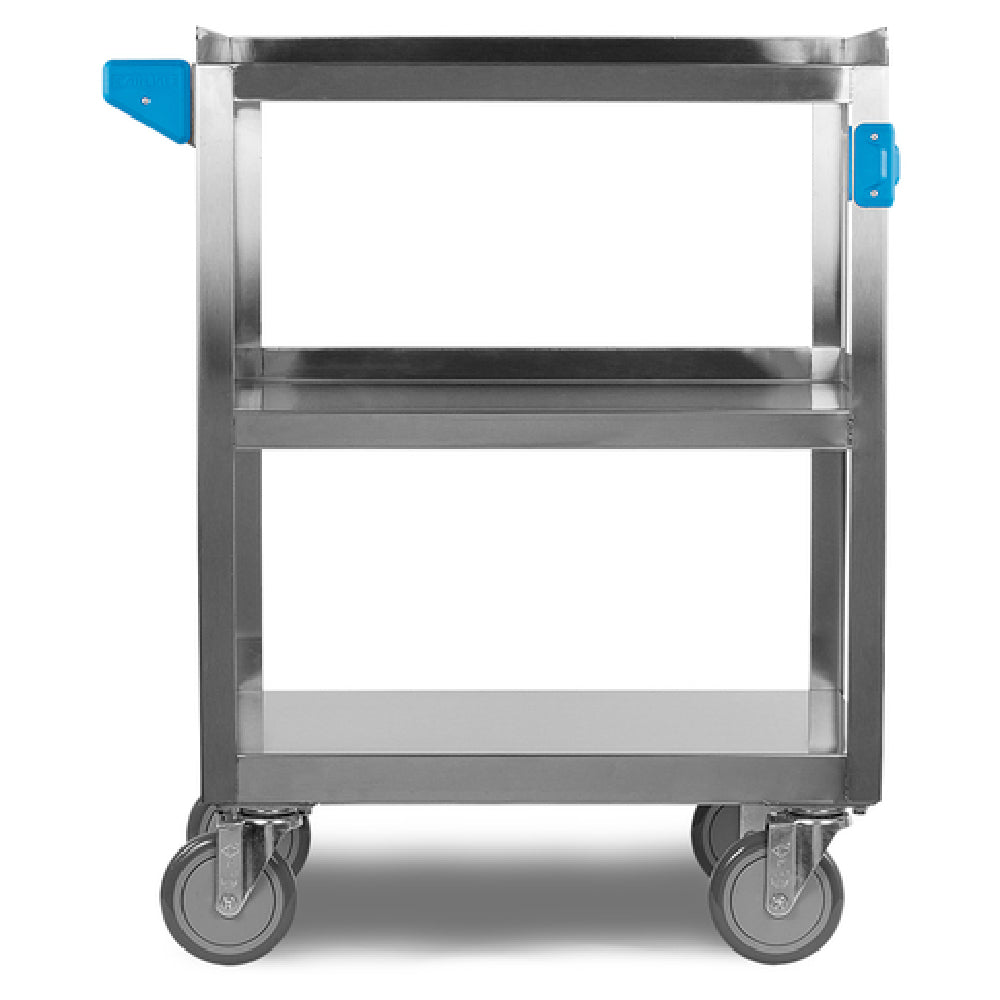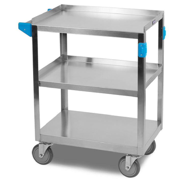 The Carlisle UC3031524 Carlisle Utility Cart is a versatile and durable solution for a wide range of professional environments, featuring a 300 lb. capacity that ensures it can handle substantial loads with ease. Measuring 24"L x 15-1/2"W x 32-1/2"H, this utility cart is designed to fit seamlessly into various settings without occupying excessive space. Its open design includes three shelves, with two featuring raised edges to secure items during transport, enhancing the cart's practicality and safety. The inclusion of a single push handle and non-marking soft rubber bumpers provides ease of maneuverability and protection against damage to surrounding surfaces. The cart's robust construction is highlighted by its TIG welded joints and high-quality 18/10 stainless steel material, ensuring longevity and resistance to wear and tear. With four casters, the Carlisle UC3031524 offers smooth mobility across different surfaces, making it a reliable choice for catering, hospitality, and healthcare sectors that demand efficient transport solutions. This utility cart stands out with its attention to detail and commitment to quality, serving as a trustworthy tool in maintaining productivity and organization across various professional settings.