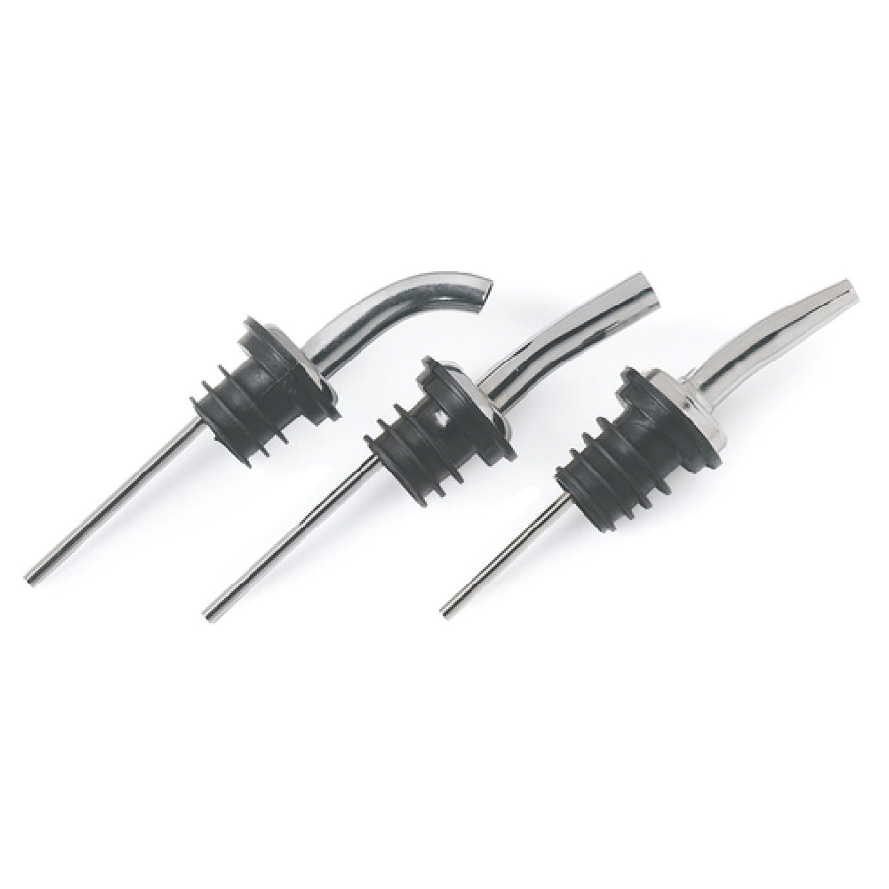 The Carlisle WPM4538 Carlisle Pour-Rite® Liquor Pourer Super Fast Free-flow Pour is a premium choice for bartenders and beverage professionals seeking efficiency and speed in their service. This pourer is specifically engineered to deliver a super-fast, free-flow pouring experience, catering to high-demand environments where quick service is paramount. The design features an angled spout that facilitates an uninterrupted and precise stream of liquor, enhancing the ease of use for various liquid products. Notably, the pourer is manufactured without a collar, offering a sleek and streamlined aesthetic that complements modern bar settings. Crafted from SAN, this material choice ensures a durable construction that withstands the rigors of continuous use, while its chrome and black finish adds a touch of sophistication. The pourer is dishwasher safe, simplifying the cleaning process and maintaining hygiene standards, especially crucial in busy hospitality settings. Available with a minimum order of 12 units, this product is ideal for establishments looking to outfit multiple stations or cater to large-scale operations. By combining functionality with durability, the Carlisle WPM4538 addresses the needs of diverse markets, including bars, restaurants, and event venues, where efficiency and presentation are equally prioritized.