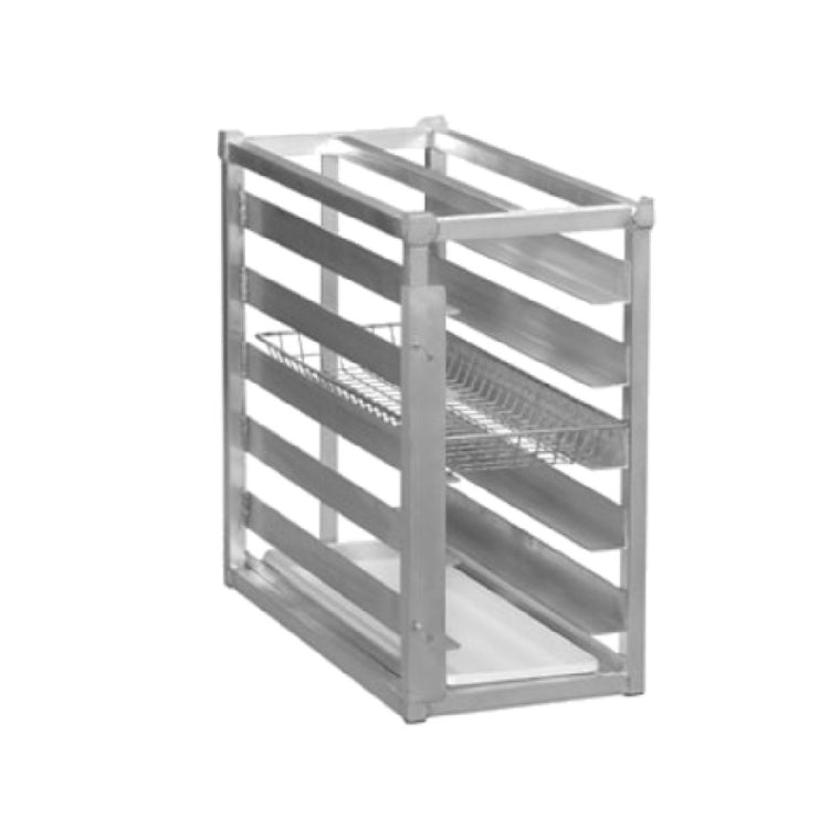 The Channel 484DD Donut Basket / Screen Rack Donut Basket Rack 12"W x 27"D x 24"H is an expertly engineered solution for bakeries and food service establishments requiring efficient storage and handling of baked goods. With its aluminum construction, this rack is designed for durability and ease of use, featuring an end-load design that allows for quick and straightforward access. The rack measures 12 inches in width, 27 inches in depth, and 24 inches in height, making it compact yet spacious enough to accommodate multiple items. It boasts five levels with 4-inch angle spacing, providing ample room for organizing donut baskets or screens. Weighing in at 22 pounds, the rack is lightweight for easy maneuverability while still maintaining a sturdy build. Its inclusion in the EXTRA Heavy-Duty Series is demonstrated by the 2-inch wire slides, ensuring reliable performance under regular use. Proudly made in the USA and NSF certified, the Channel 484DD rack meets high standards for safety and quality assurance, making it a trusted product within the industry. This basket rack is an ideal choice for businesses looking to streamline their operations with a reliable, efficient, and durable storage solution.