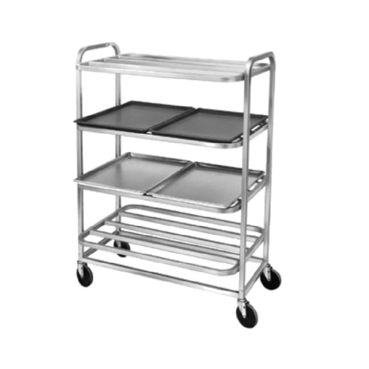 The Channel SM-4 Lug Rack Display / Universal Rack Spot Merchandiser is a versatile and robust solution designed for efficient storage and display needs across various industries. With dimensions of 40"W x 26.25"D x 55.25"H, it provides ample space for organizing products. Constructed from durable aluminum, this merchandiser is not only lightweight at 34 lbs (excluding the 50 lbs pallet weight) but also ensures long-lasting use. Its design features four shelves with 12" shelf spacing, offering optimal configuration flexibility for different product types and sizes. The inclusion of 5" swivel stem casters, model # CSS45O, enhances mobility, making it easy to reposition within retail spaces or back-of-house environments. Proudly made in the USA, this rack meets NSF certification standards, ensuring compliance with health and safety regulations. Its multifunctionality makes it suitable for diverse market segments, from retail display and food service to industrial organization. The Channel SM-4 combines practicality with quality construction, making it a valuable asset for any business seeking a reliable and adaptable merchandising solution.