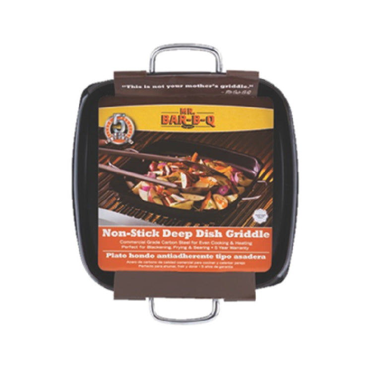 The Chef Master 06100YNS Mr. Bar-B-Q® Classic Prestige Griddle - 14" Deep Dish, is meticulously crafted for professional and home use, featuring commercial-grade carbon steel construction that ensures exceptional durability and heat distribution. With its 14-inch deep dish design, this griddle is perfect for preparing a variety of meals, from succulent steaks to delicate pancakes, catering to diverse culinary needs. It is built to withstand high-volume use while maintaining its structural integrity, making it an ideal choice for commercial kitchens and serious home chefs alike. The griddle's robust construction is matched by its reliability, supported by a generous 5-year warranty, providing peace of mind and assurance of long-term use. This combination of size and material makes it particularly well-suited for large gatherings or restaurant settings where consistency and efficiency are paramount. Whether you're catering to a bustling diner or setting up an outdoor cookout, the Chef Master 06100YNS encapsulates quality and performance, making it a valuable addition to any culinary operation. Its distinctive features make it a versatile tool in the hands of culinary professionals who demand high standards and consistent results from their equipment.