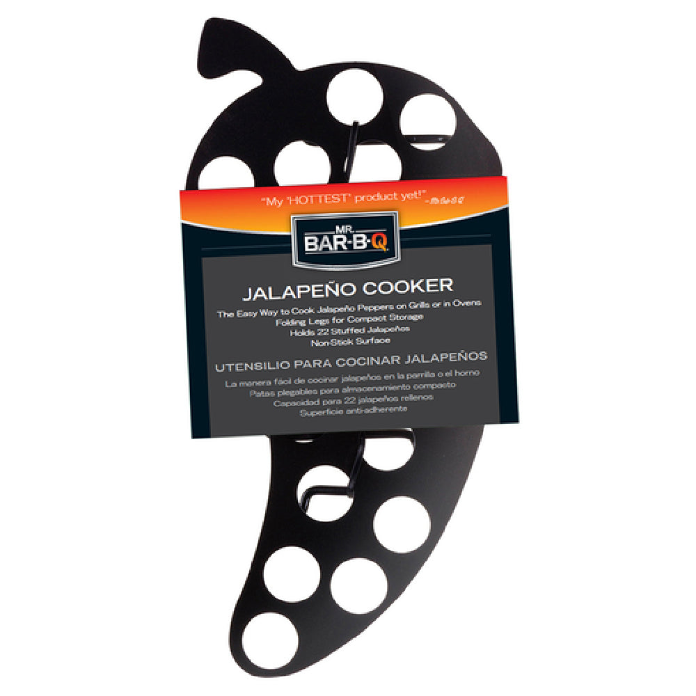 The Chef Master 06136Y Mr. Bar-B-Q® Jalapeño Cooker is an innovative kitchen tool designed to accommodate up to 22 stuffed jalapeños, making it a versatile asset for both home cooks and professional chefs. Featuring folding legs, this cooker offers convenient storage and portability, allowing users to easily transport and set up the unit in various cooking environments. The non-stick surface ensures effortless cleaning and prevents food from adhering, thereby enhancing the cooking experience and maintaining the integrity of the stuffed jalapeños. This cooker is particularly valuable for culinary enthusiasts who specialize in grilled or barbecued appetizers, offering them the precise tool to achieve consistent results. The distinct design of the Chef Master 06136Y Mr. Bar-B-Q® Jalapeño Cooker makes it an essential addition to any kitchen that values efficiency and versatility, especially during gatherings or parties where appetizers play a central role. Its ability to hold a significant number of jalapeños at once makes it a time-saving solution for preparing large batches, catering to both small-scale family dinners and larger social events. This unique product combines practicality with performance, making it a standout choice in the realm of specialized cooking accessories.