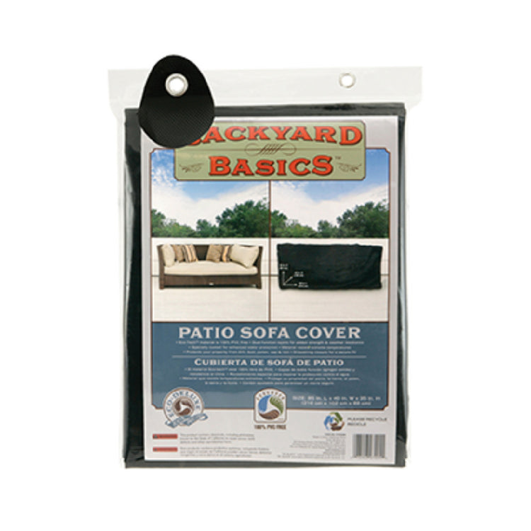 The Chef Master 07205BB Mr. Bar-B-Q® Backyard Basics Patio Sofa Cover is an expertly designed protective solution for outdoor sofa furniture, with dimensions of 85 inches in length, 40 inches in width, and 35 inches in height. This cover is tailored to meet the needs of homeowners and commercial outdoor settings, effectively safeguarding your patio furniture from environmental elements. Featuring a convenient drawstring closure, it ensures a snug fit, minimizing exposure to dust and debris. Notably, the cover is water and heat resistant, offering durability against harsh weather conditions, which is essential for maintaining the longevity and appearance of your outdoor furniture. The use of Eco-Tech™ material underscores its commitment to environmental sustainability, as it is crafted to be 100% PVC-free, making it an eco-friendly choice for environmentally conscious consumers. Presented in a sleek black design, it complements various outdoor aesthetics, enhancing the visual appeal of your patio setup. The Chef Master 07205BB exemplifies a thoughtful blend of functionality and eco-friendly innovation, catering to diverse market segments that prioritize both protection and environmental responsibility in outdoor furniture maintenance.